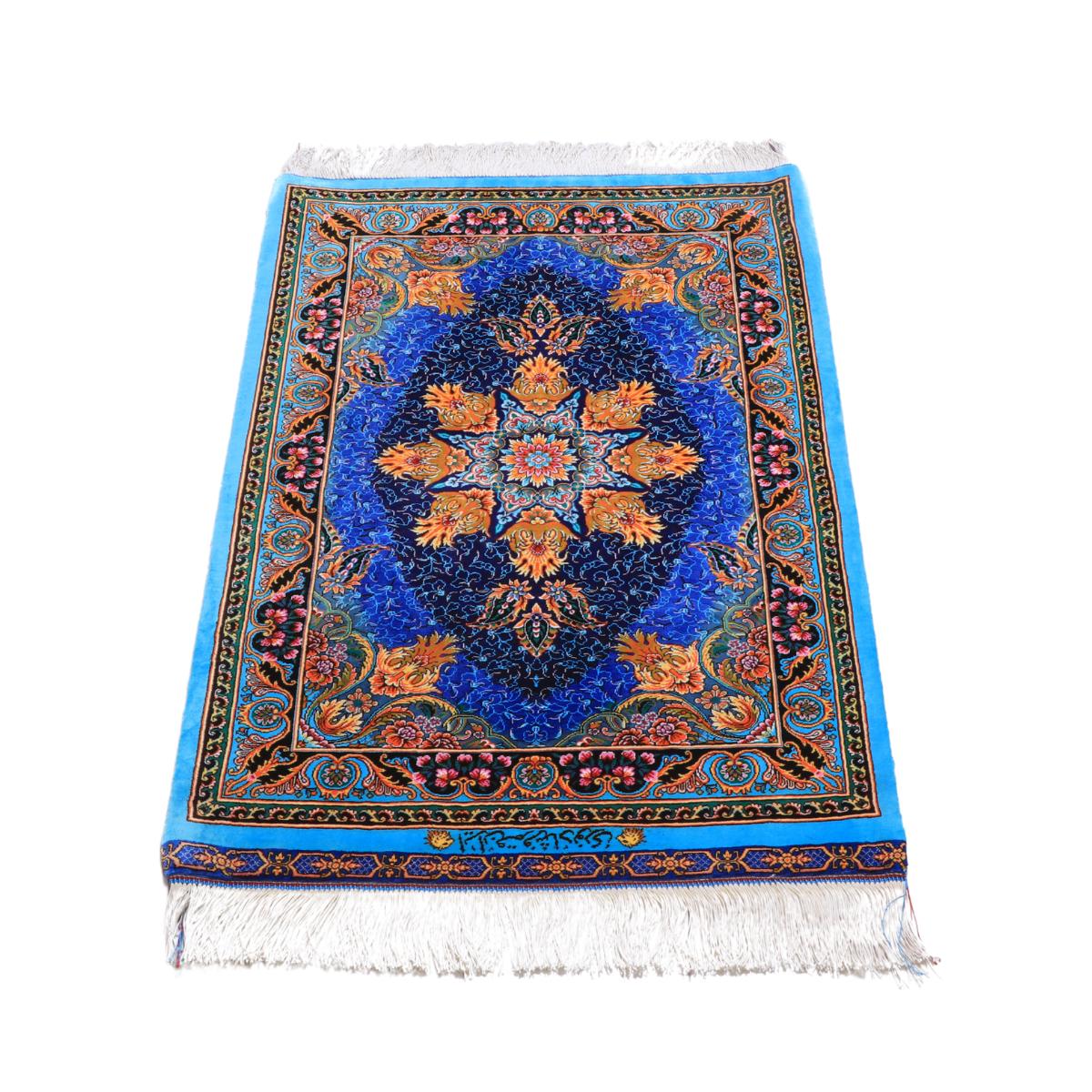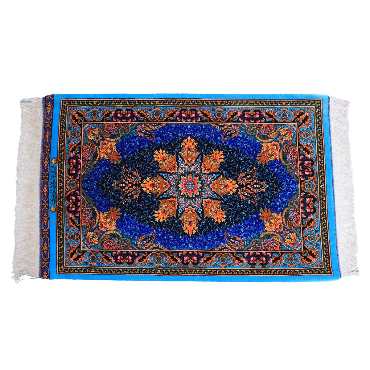 高級ペルシャ絨毯(シルク100%)ファルシャド・ヌーリ工房 92×60cm(FN-70289)