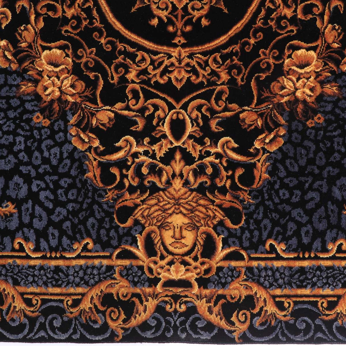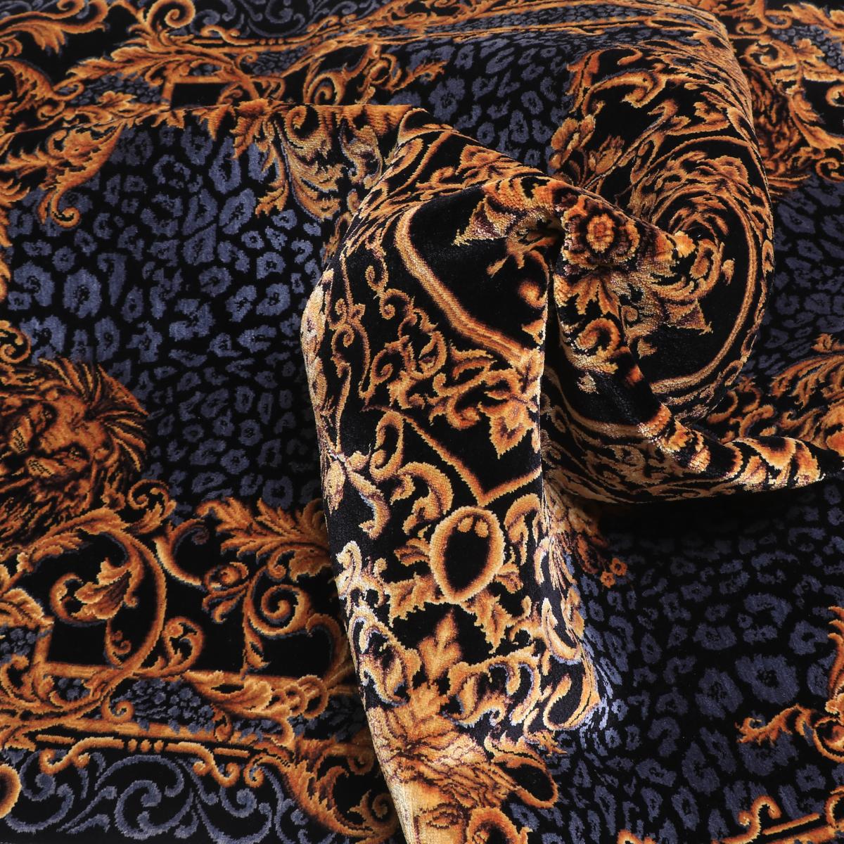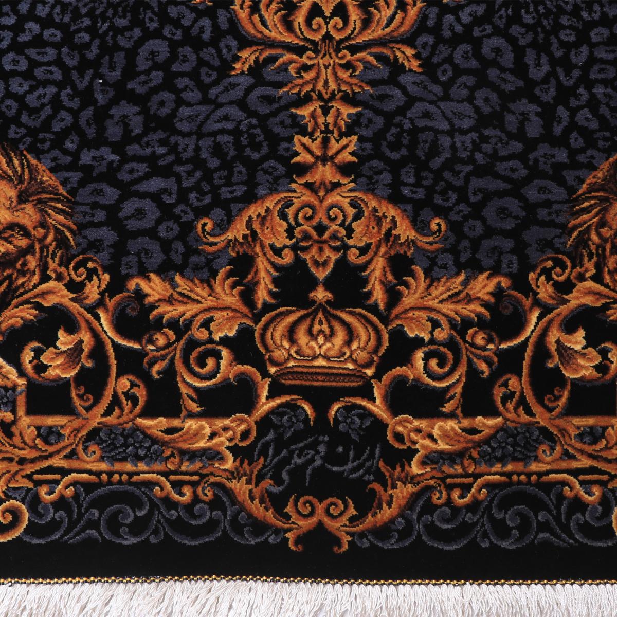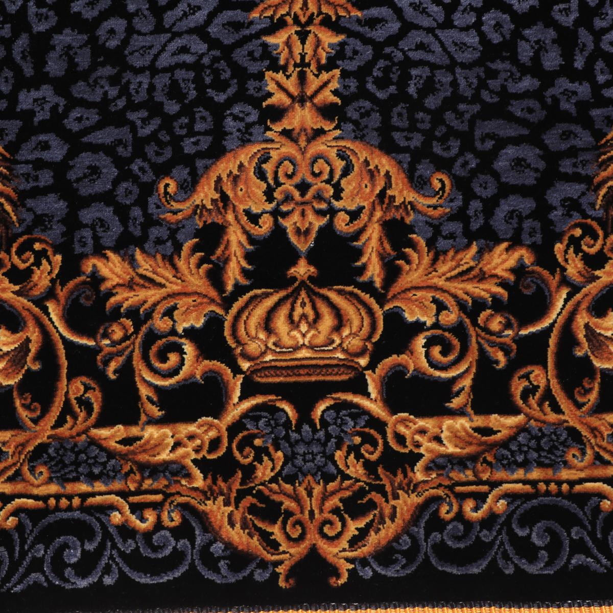 デザインの魅力:金のアラベスクが額縁のように巡り、中央の円文を際立たせます。端正でクラシック、敷くだけで空間がきゅっと締まります。