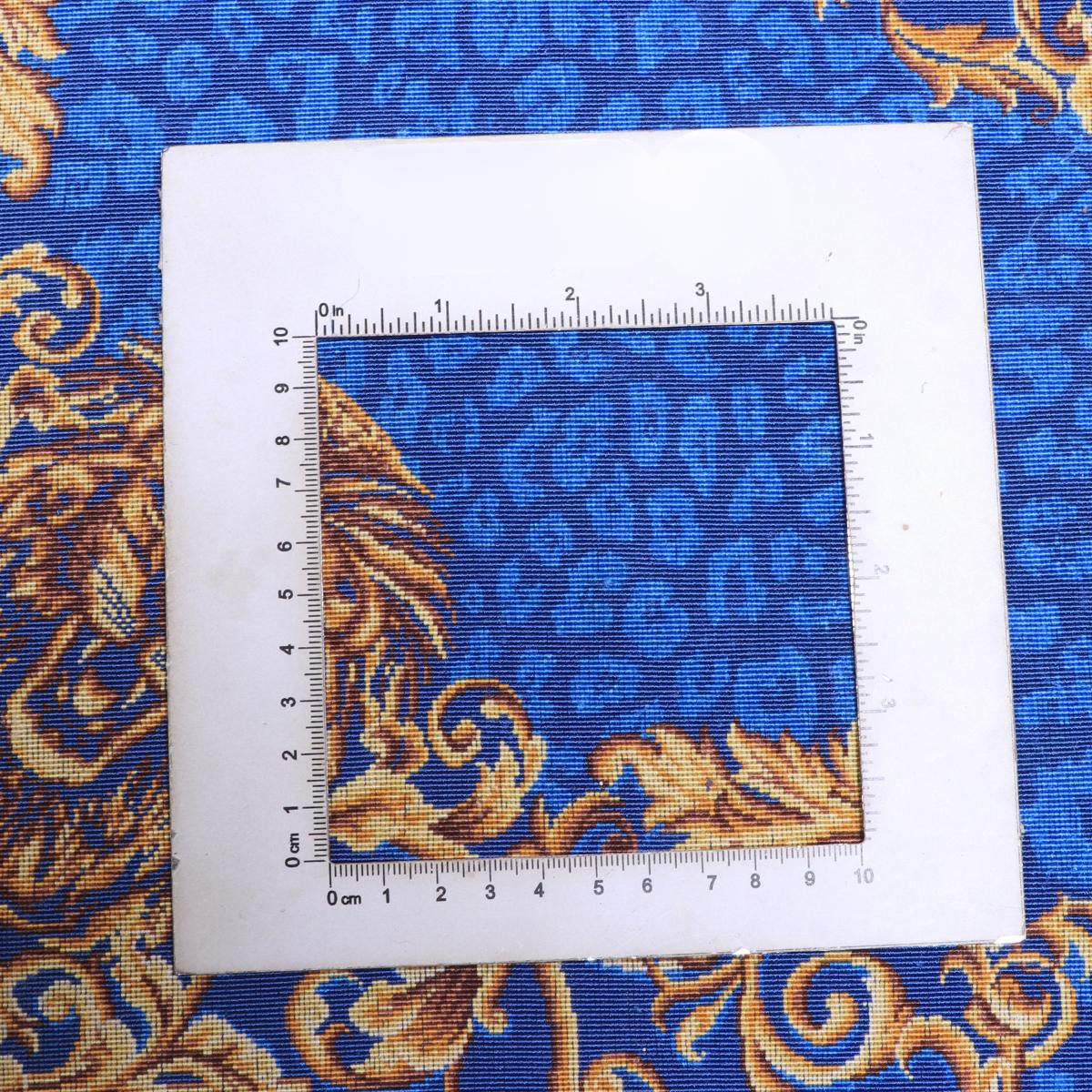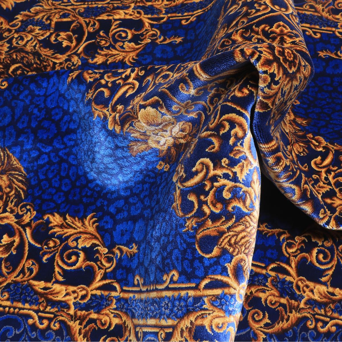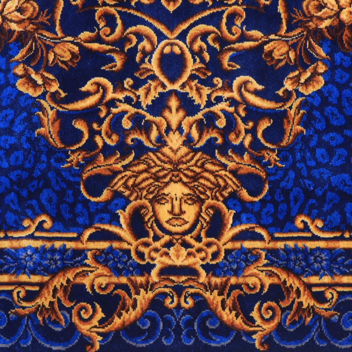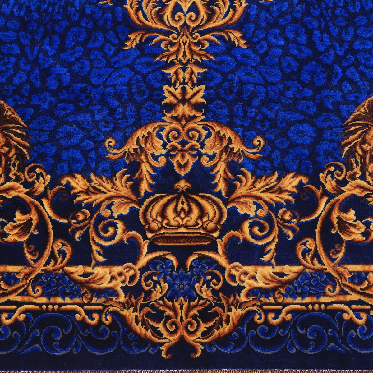デザインの魅力:金のアラベスクが四隅から中心へ結ぶ端正な構図。円花が際立ち、敷くだけで空間がきゅっと締まります。