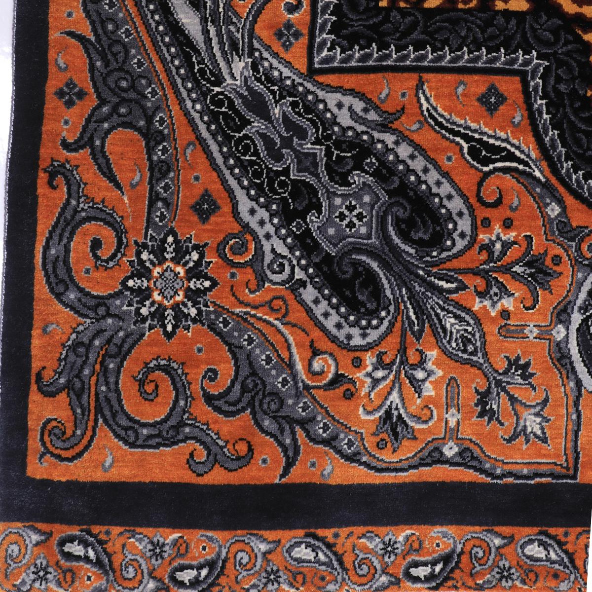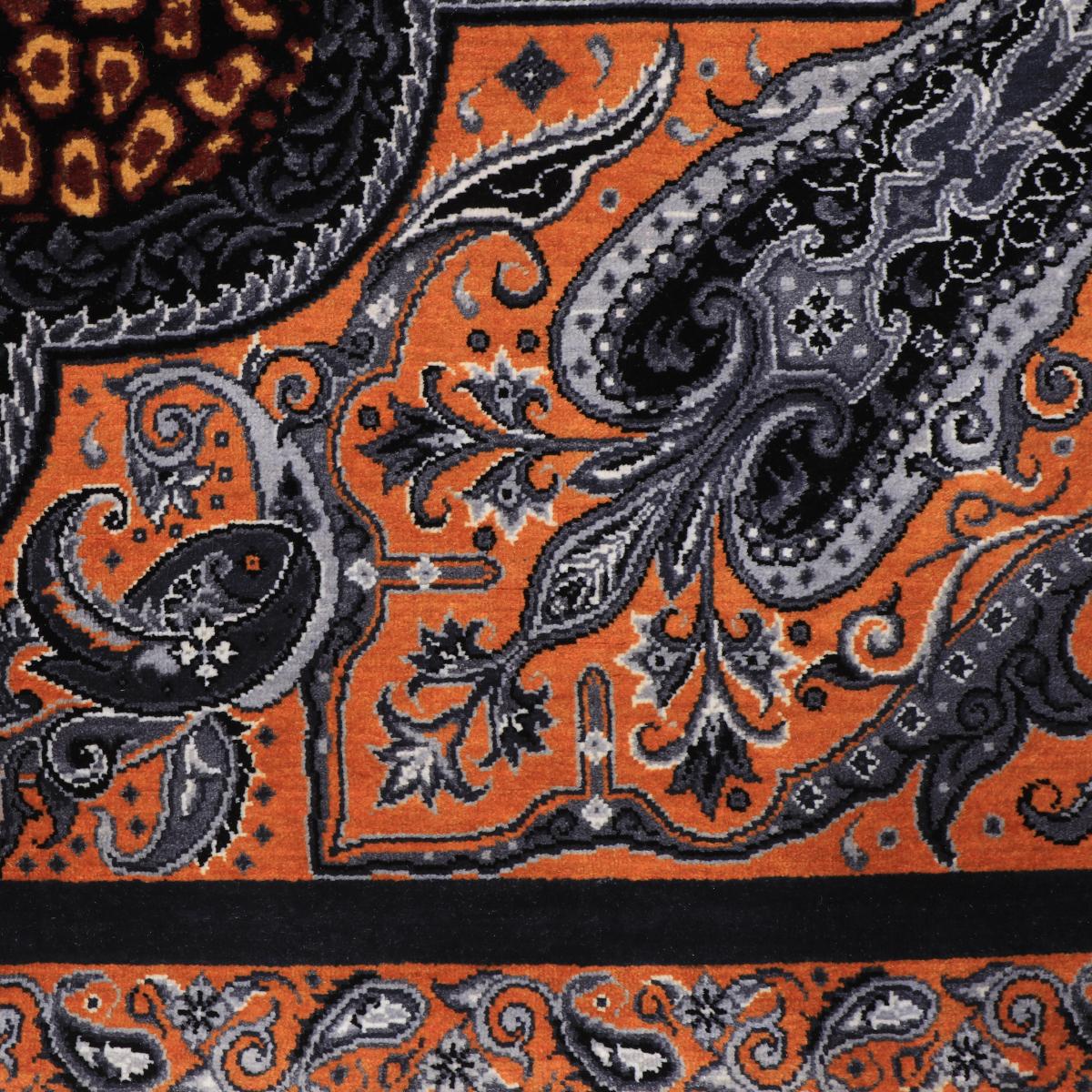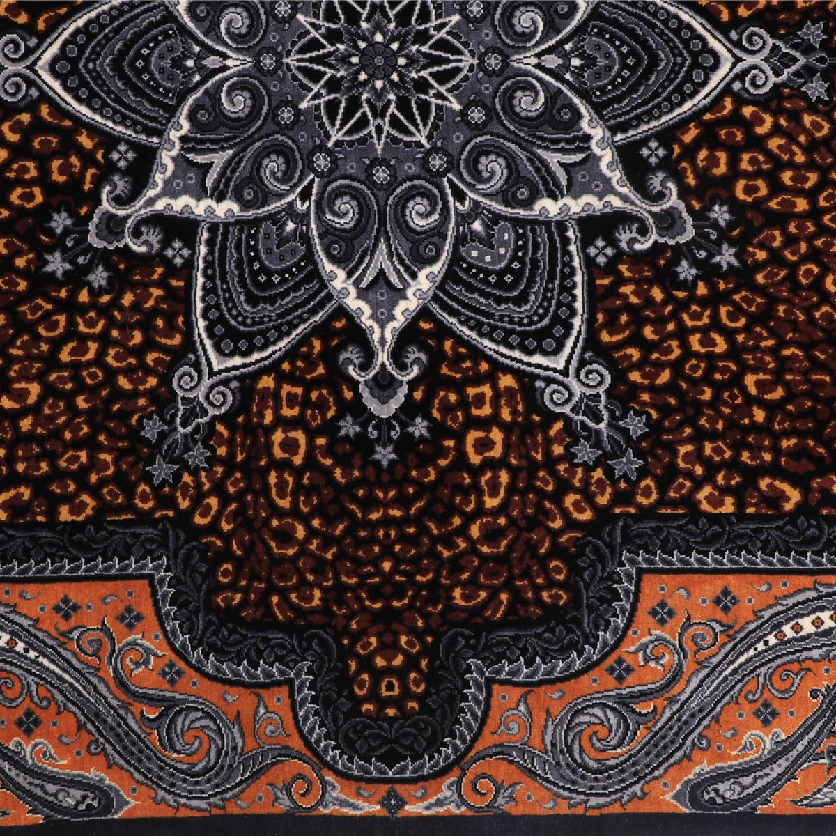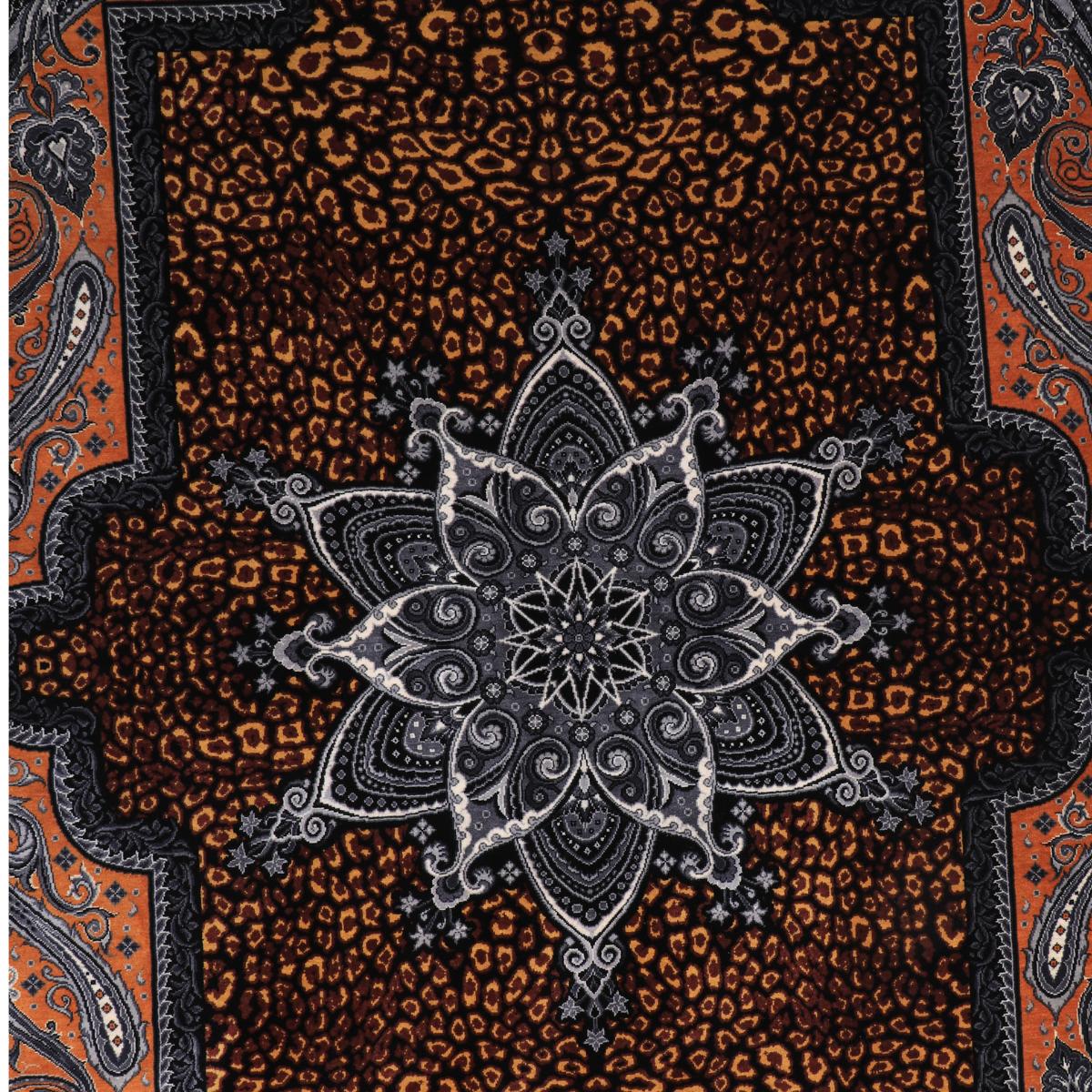 デザインの魅力:白銀の星花を中心に、曲線的なペイズリーを端正に配置。レオパード調の地模様がほどよい個性を添え、置き場所を選びません。