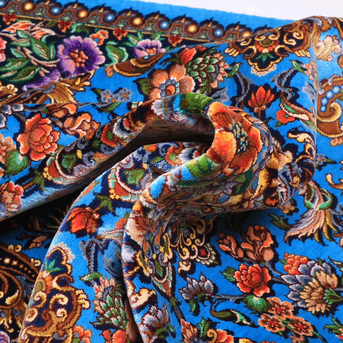 質感の良さ:シルク100%のきめ細かな毛並み。指で撫でると流れが変わり、光で艶がやわらかく移ろう、さらりと心地よい踏み心地です。