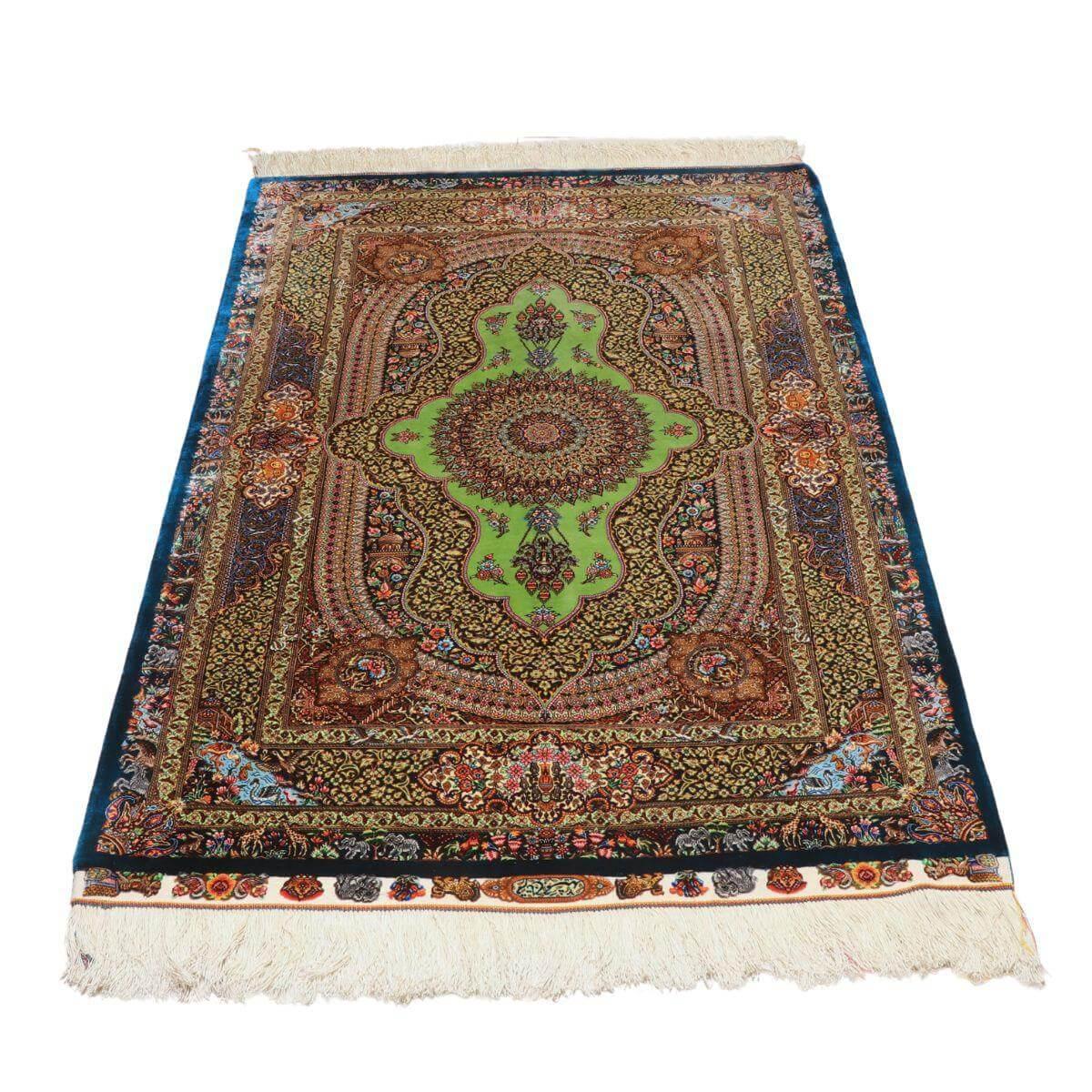 高級ペルシャ絨毯(シルク100%)ジャムシーディー工房 148×101cm(FN-70355)