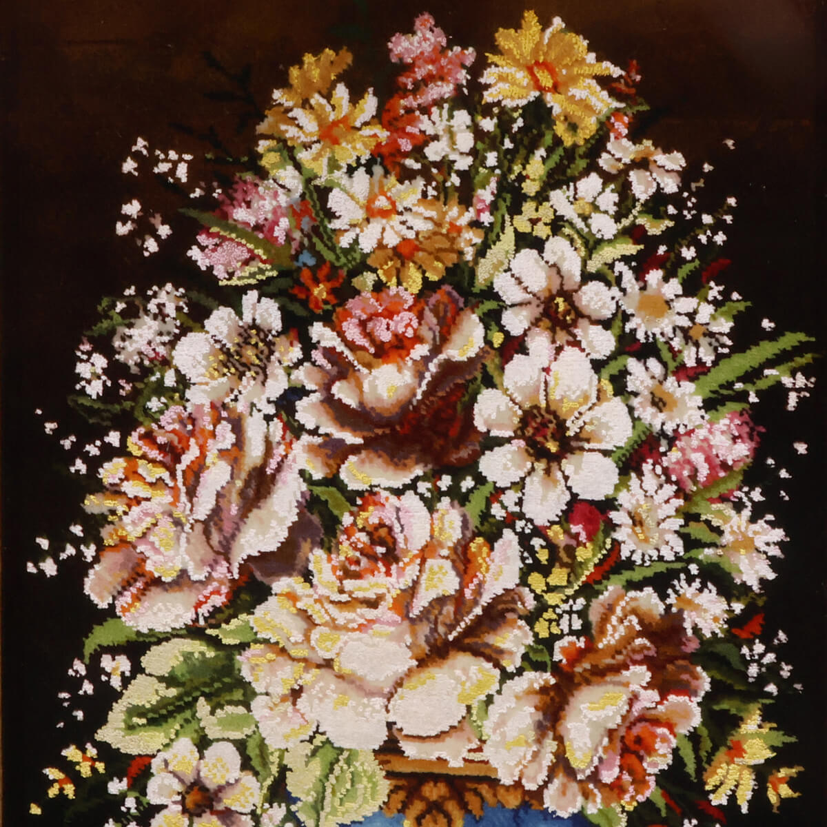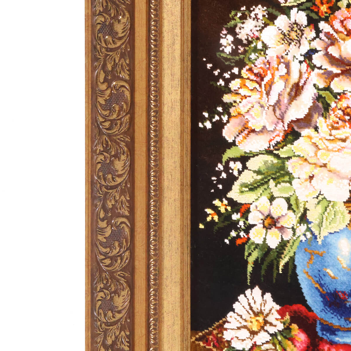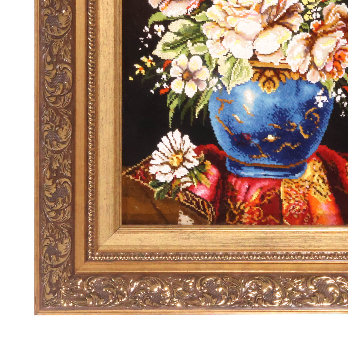 この絵画絨毯は、花瓶の鮮やかな青が本当に印象的で、どこに飾ってもお部屋がぱっと華やぎます。季節やインテリアを問わず楽しめるので、ぜひ毎日の暮らしに彩りを添えてみてください。ご質問やご相談もお気軽にどうぞ!