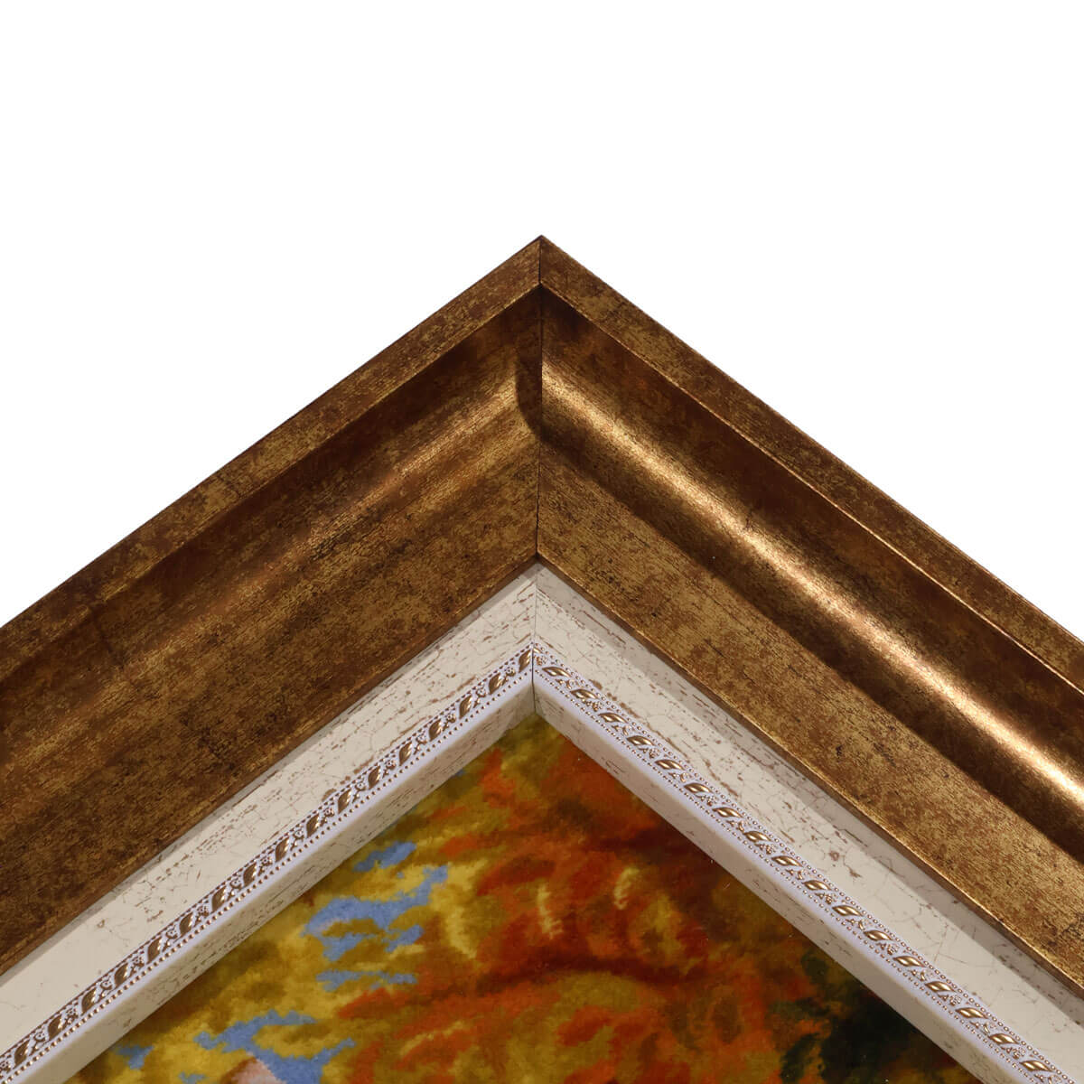 シンプルかつ高級感のあるゴールドフレームが、絨毯アートの魅力をさらに引き立てます。届いたその日から壁に飾ってお楽しみいただけます。