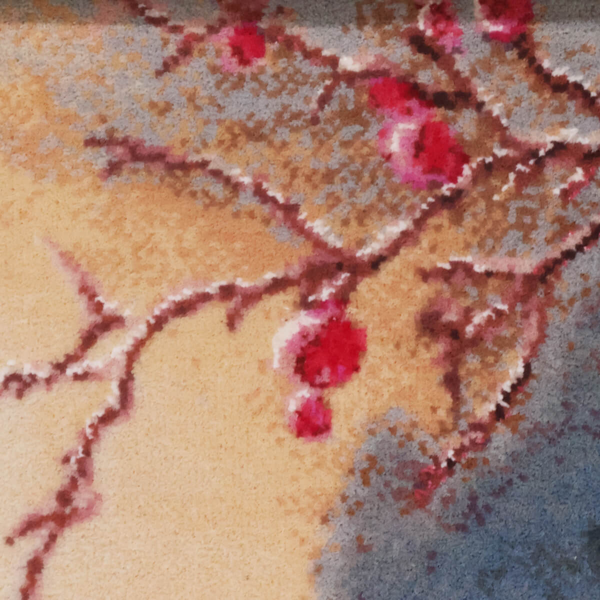 風景や人物、動物、花々など、イマジネーションと卓越した技術で描かれるモチーフは、まるでシルクのキャンバスに描かれたような、唯一無二の芸術絨毯です。