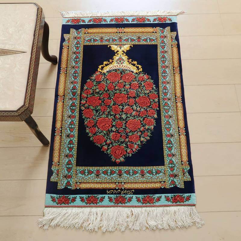 高級ペルシャ絨毯クム、シルク100% 102×65cm(FS-2112)