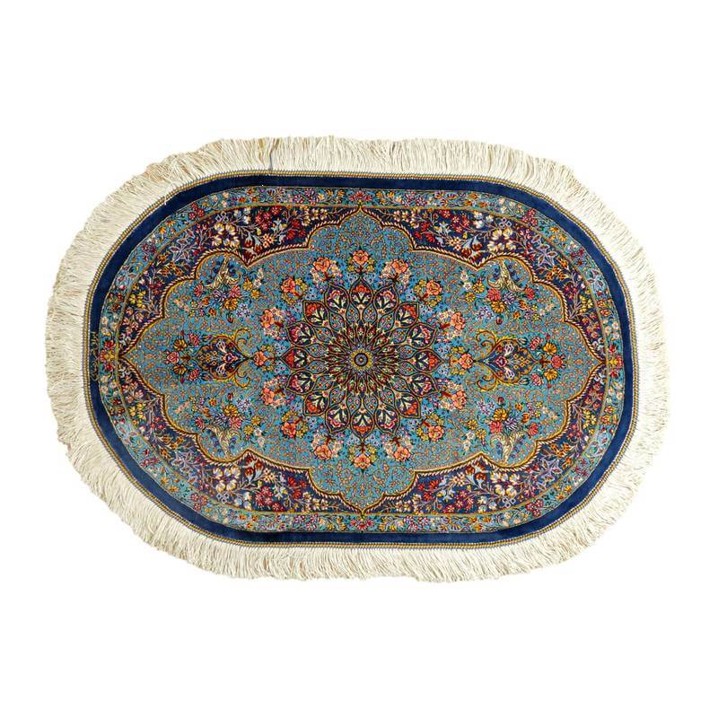 高級ペルシャ絨毯クム、シルク100% 89×61cm(FS-2114)