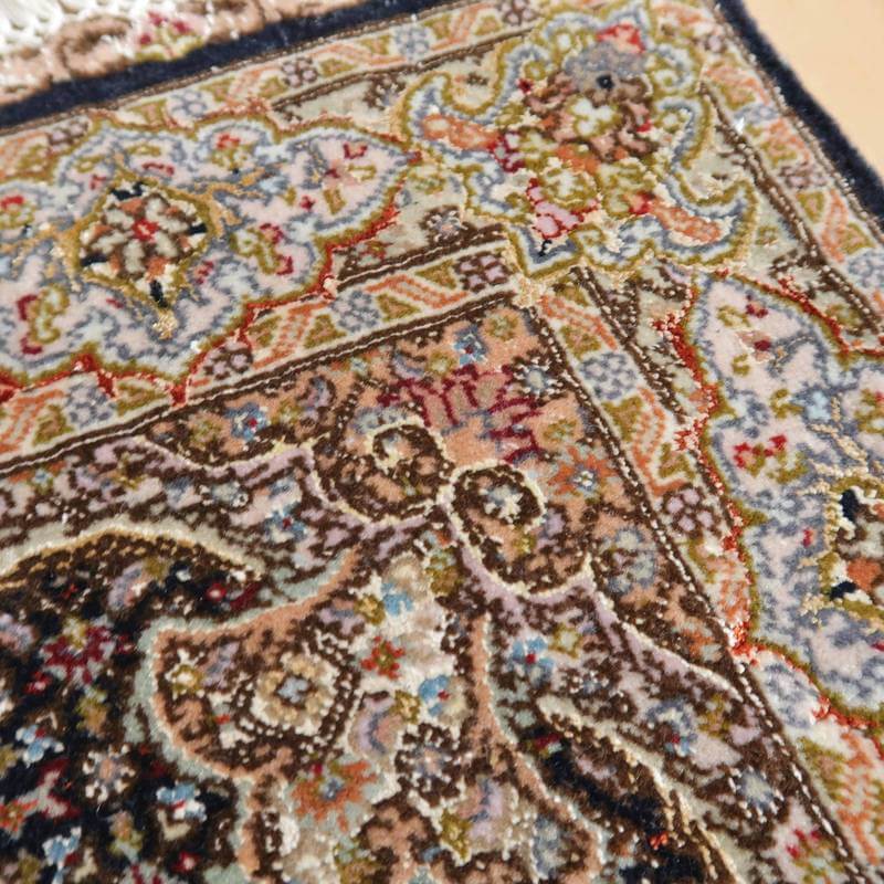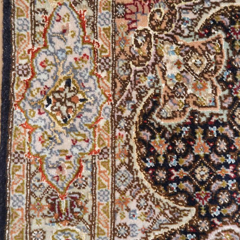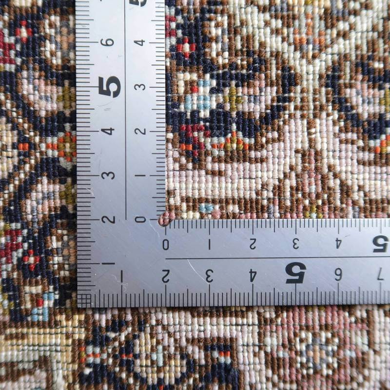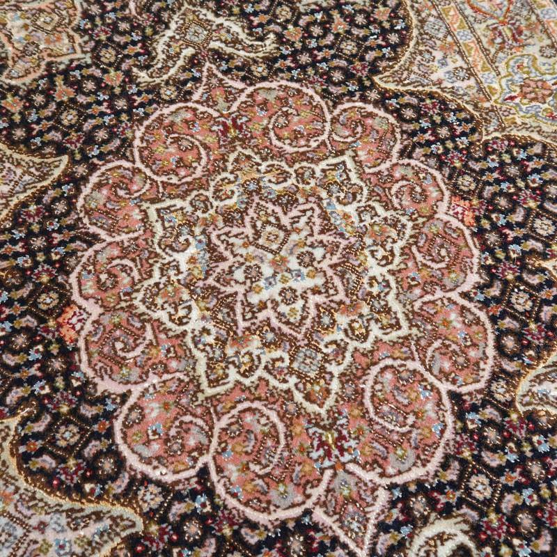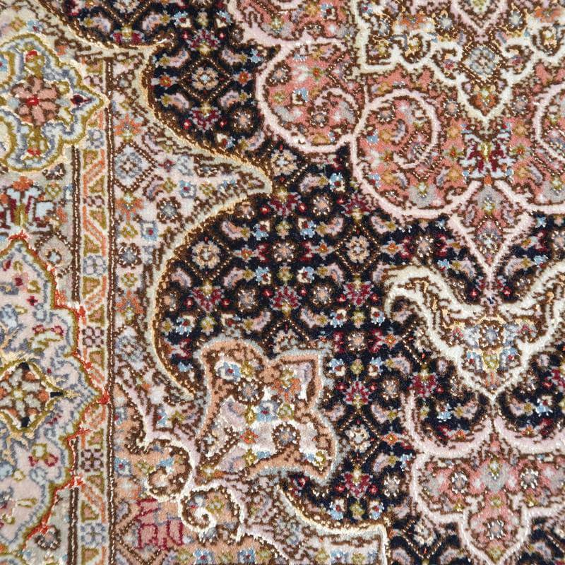 沢山の色を使って細かな文様を全面に入れたマヒ(魚)と呼ばれるタブリーズ産独特のデザインです。落ち着いたカラーと上品な雰囲気で敷く場所を選ばずに使えます。しっかりと厚みのある生地はぎっしり詰まったハリのある毛足で丈夫で耐久性が高く、重厚感も感じられます。