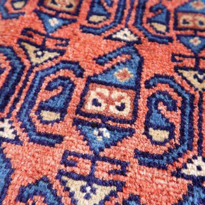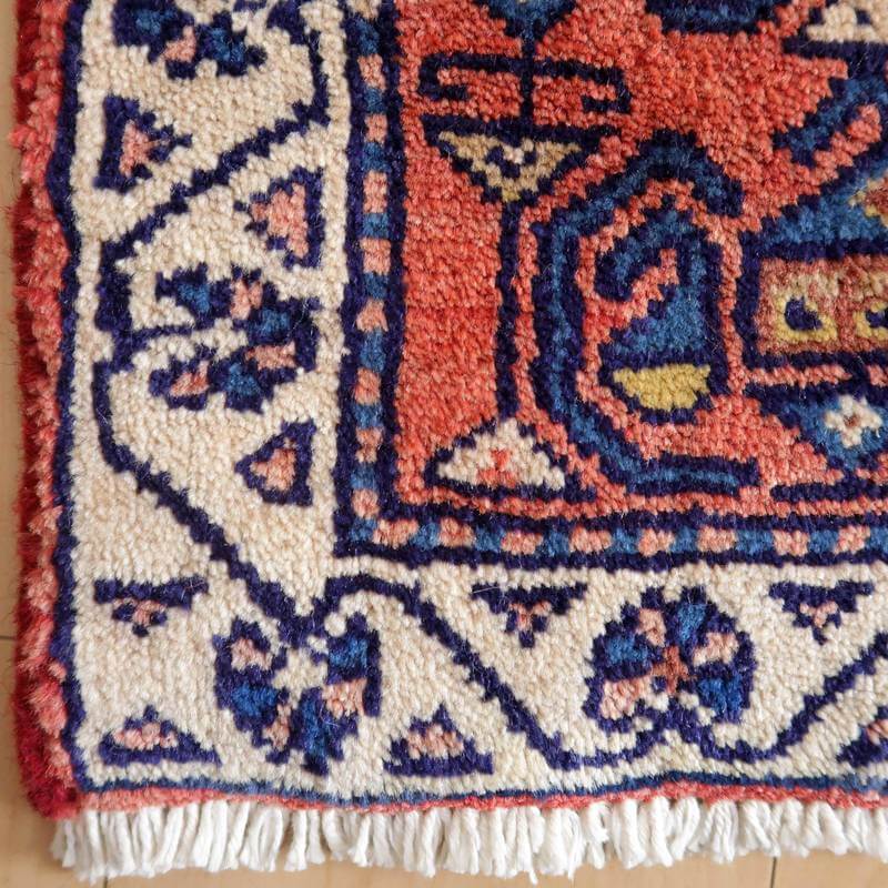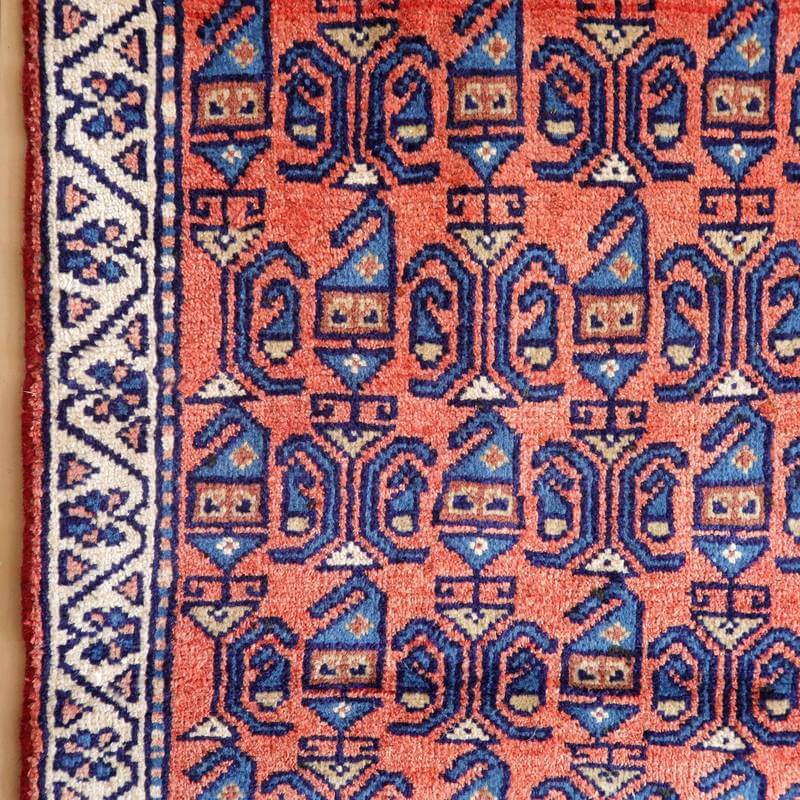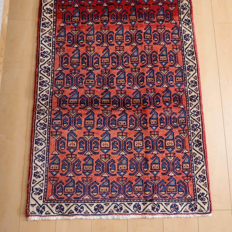 イラン南西部アフワーズに近い小さな村で家庭織りとして織られた普段使いの絨毯です。並べられたペイズリー柄は帽子をかぶった人のように見えるユニークなフォルム。褪せ感も雰囲気が良いので、和洋問わずに合わせやすく、アレンジ次第でモダンにもなる品です。柔らかなウールでコンディションも良好です。