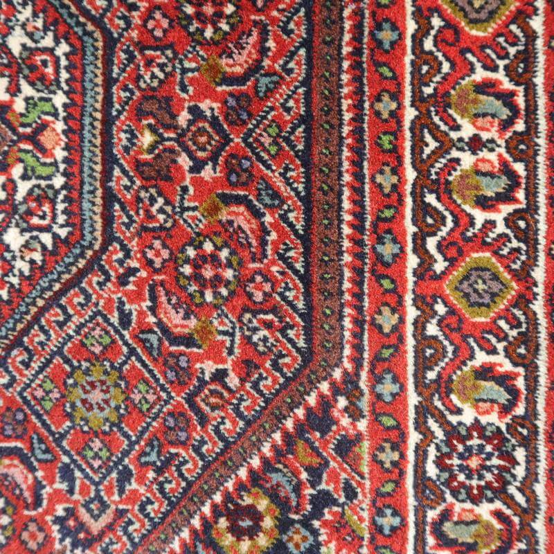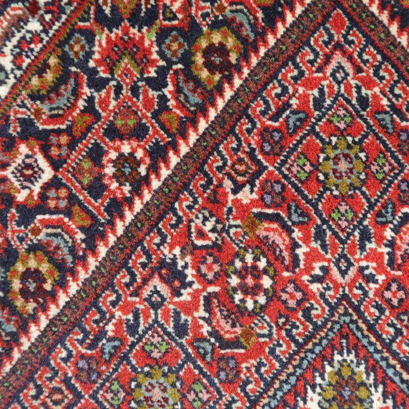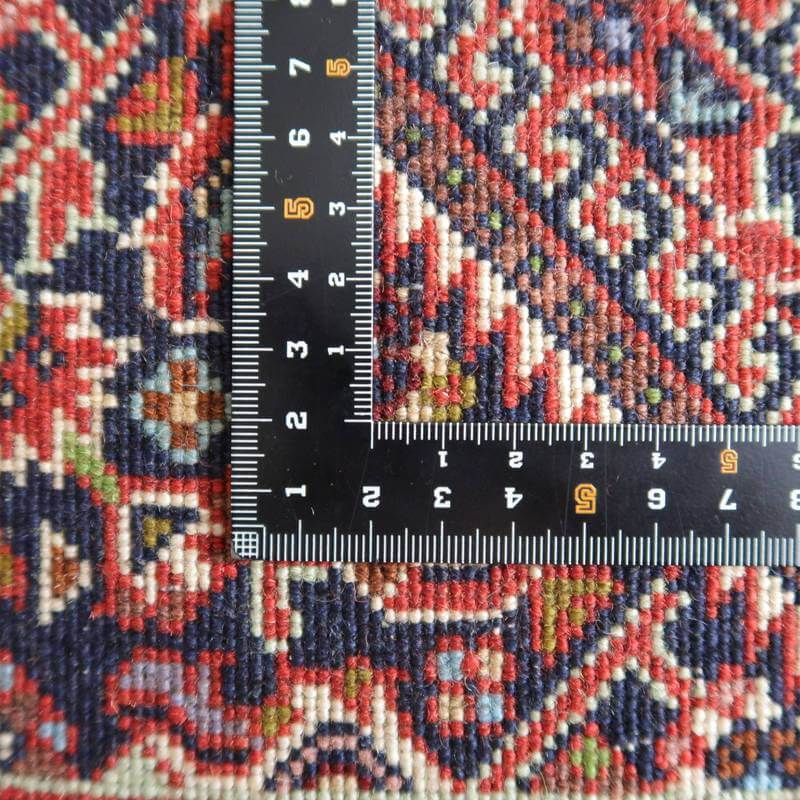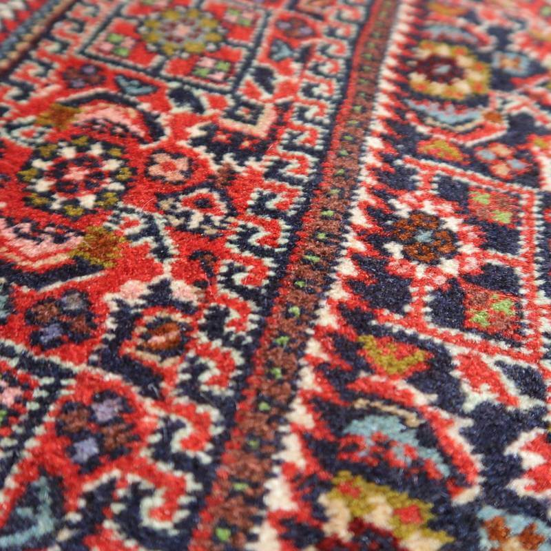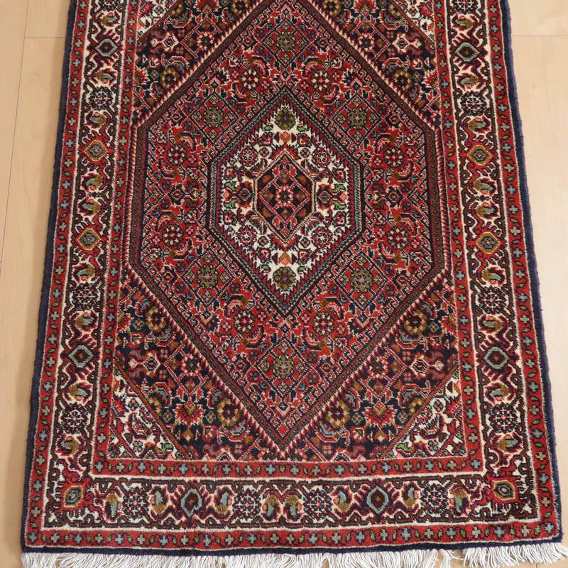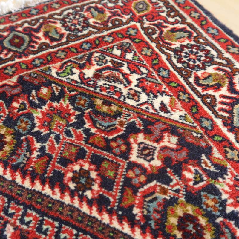 イラン北西部に位置するビジャー産のじゅうたんは、いにしえには「鉄の絨毯」と呼ばれ、そのしっかりとかたく打ち込まれた緻密な織りの丈夫さは鉄に例えられました。ハリ・コシが強い生地にはゴミが入りにくく、サラリと快適。床の硬さを遮る十分な厚みもあります。