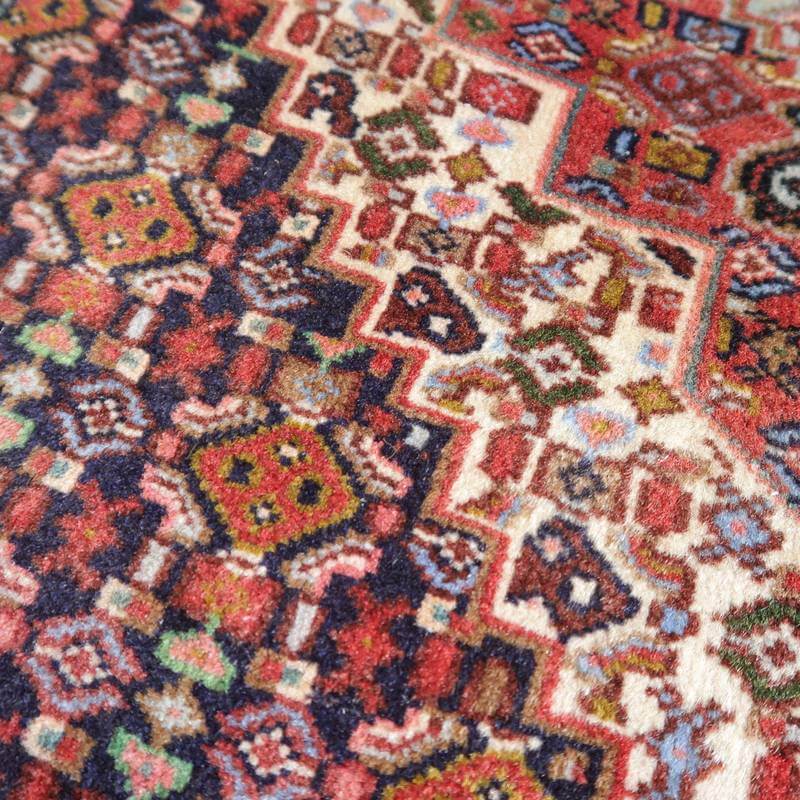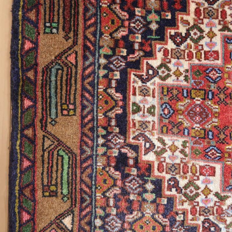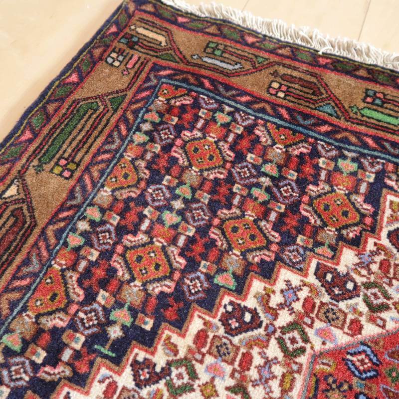 コンディションの良い品を厳選し、イラン式絨毯丸洗い洗浄を2回施した後メンテナンスをしていますが、年代物の商品には曲がりや摩耗、小さな補修やにじみがあるものもあり、商品の特性としております。汚れや破損のままのユーズド品ではございませんので新品同様の状態で安心してお使いいただけます。