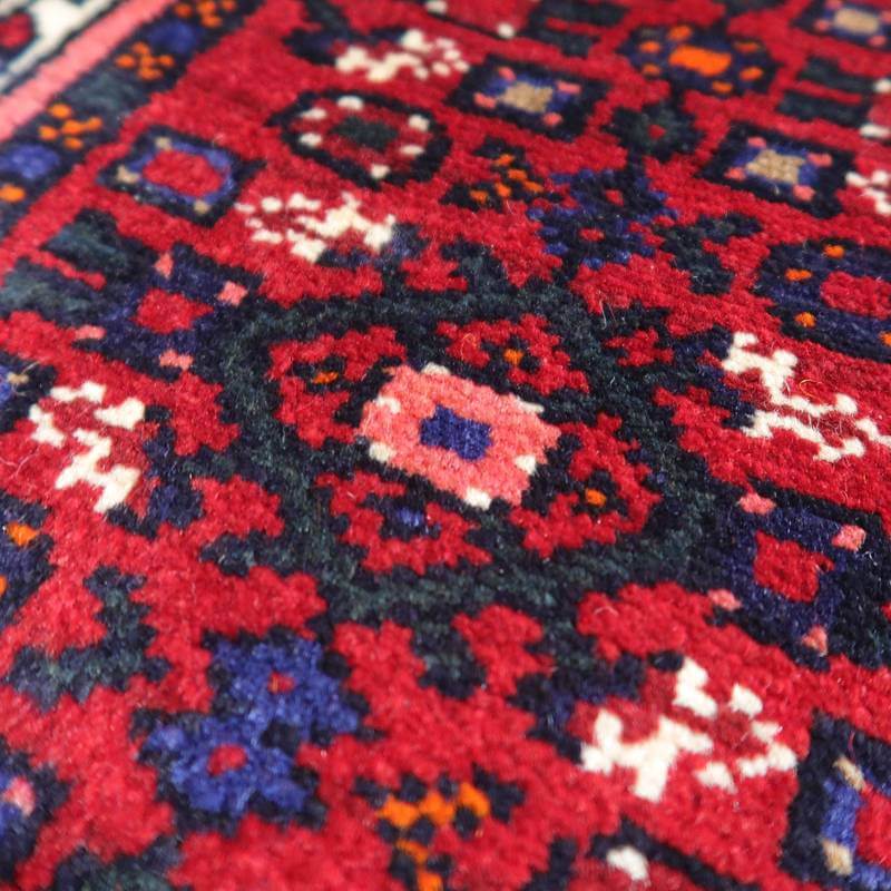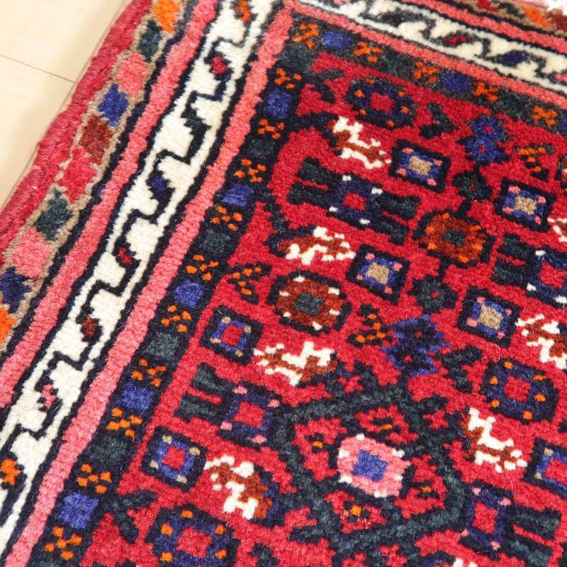 コンディションの良い品を厳選し、イラン式絨毯丸洗い洗浄を2回施した後メンテナンスをしていますが、年代物の商品には曲がりや摩耗、小さな補修やにじみがあるものもあり、商品の特性としております。汚れや破損のままのユーズド品ではございませんので新品同様の状態で安心してお使いいただけます。
