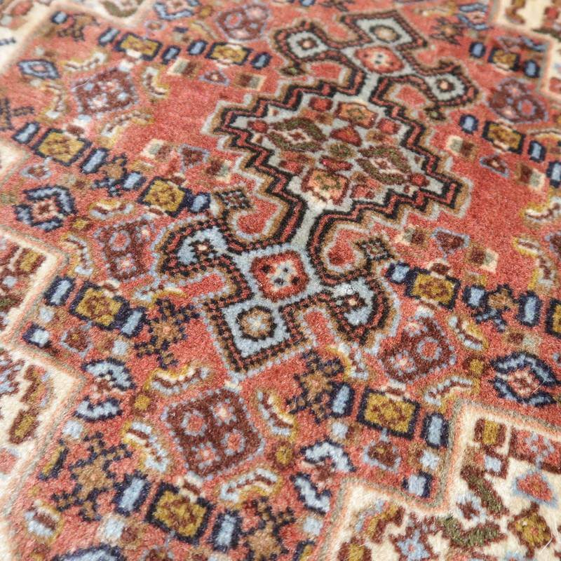 コンディションの良い品を厳選し、イラン式絨毯丸洗い洗浄を2回施した後メンテナンスをしていますが、年代物の商品には曲がりや摩耗、小さな補修やにじみがあるものもあり、商品の特性としております。汚れや破損のままのユーズド品ではございませんので新品同様の状態で安心してお使いいただけます。