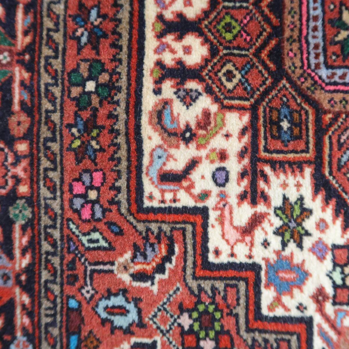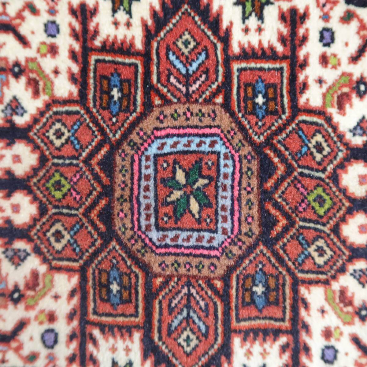 イラン北西部に位置するビジャー産のじゅうたんは、いにしえには「鉄の絨毯」と呼ばれ、そのしっかりとかたく打ち込まれた緻密な織りの丈夫さは鉄に例えられました。ハリ・コシが強い生地にはゴミが入りにくく、サラリと快適。床の硬さを遮る十分な厚みもあります。