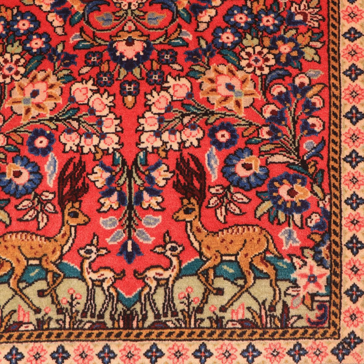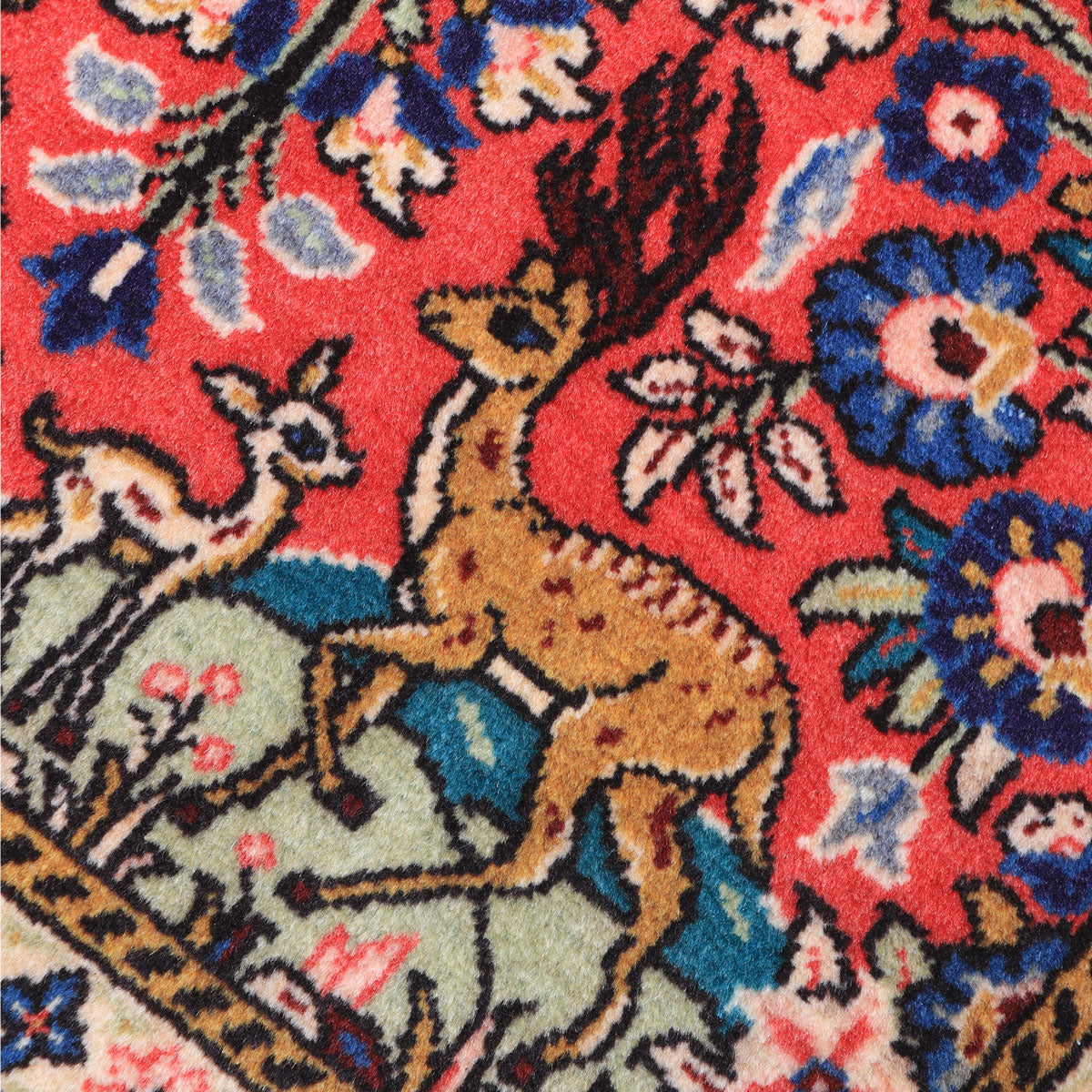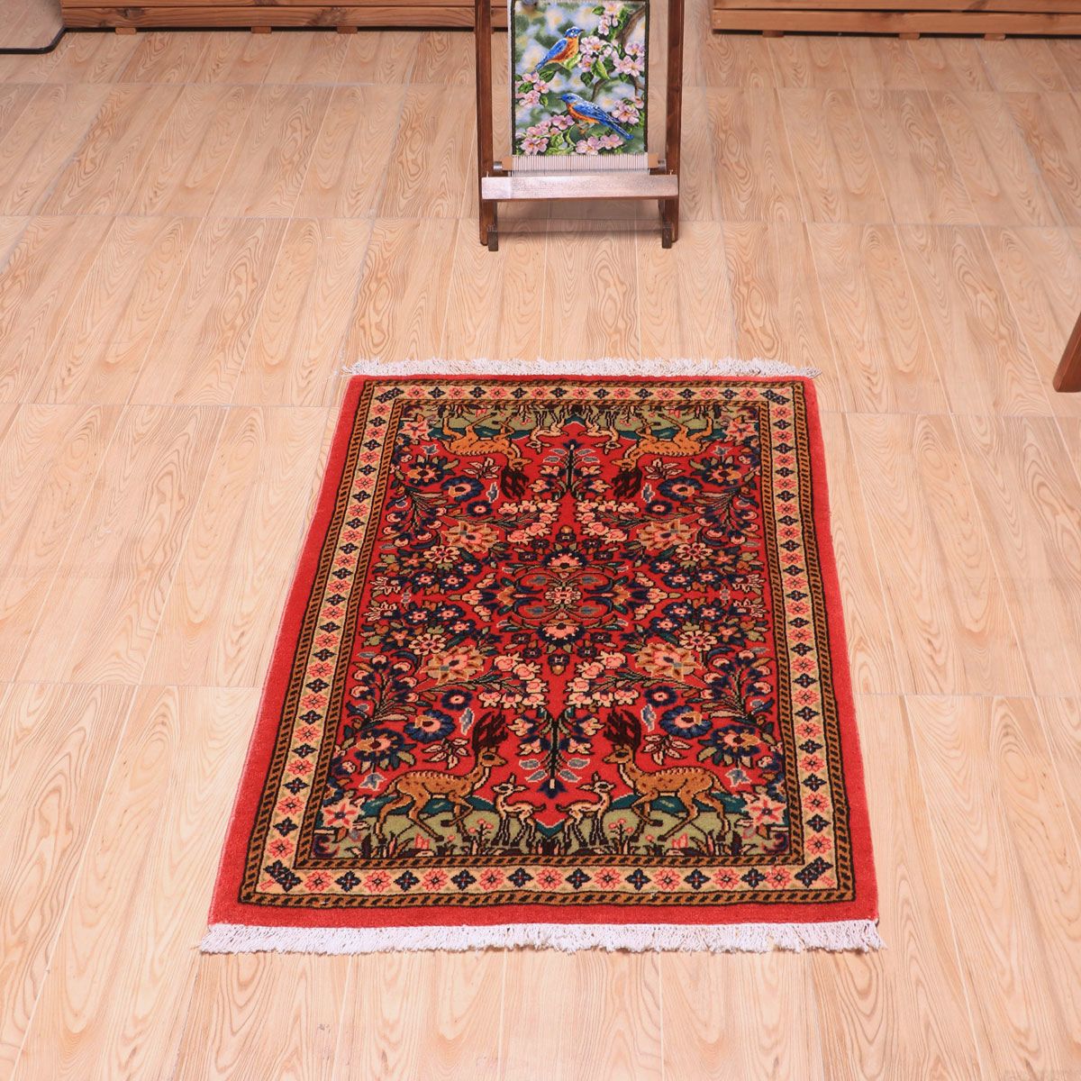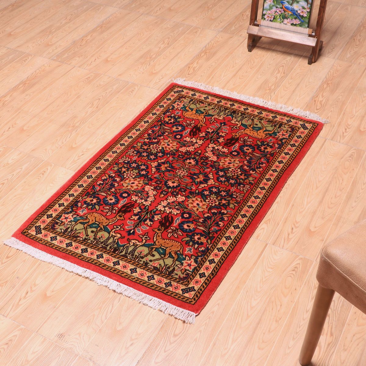・四隅には愛らしい鹿のデザインが配され、動物たちが絨毯に温もりと遊び心を添えています。