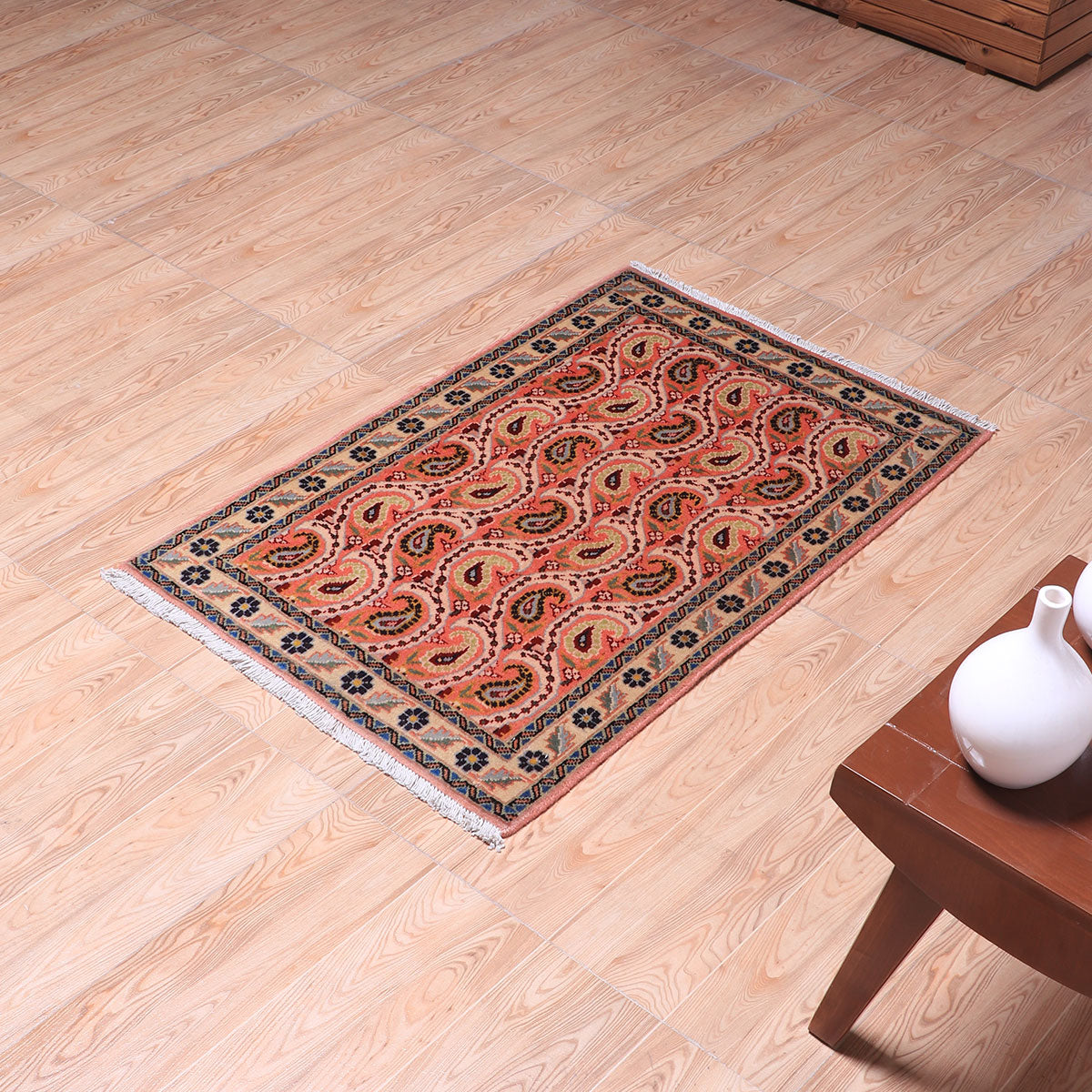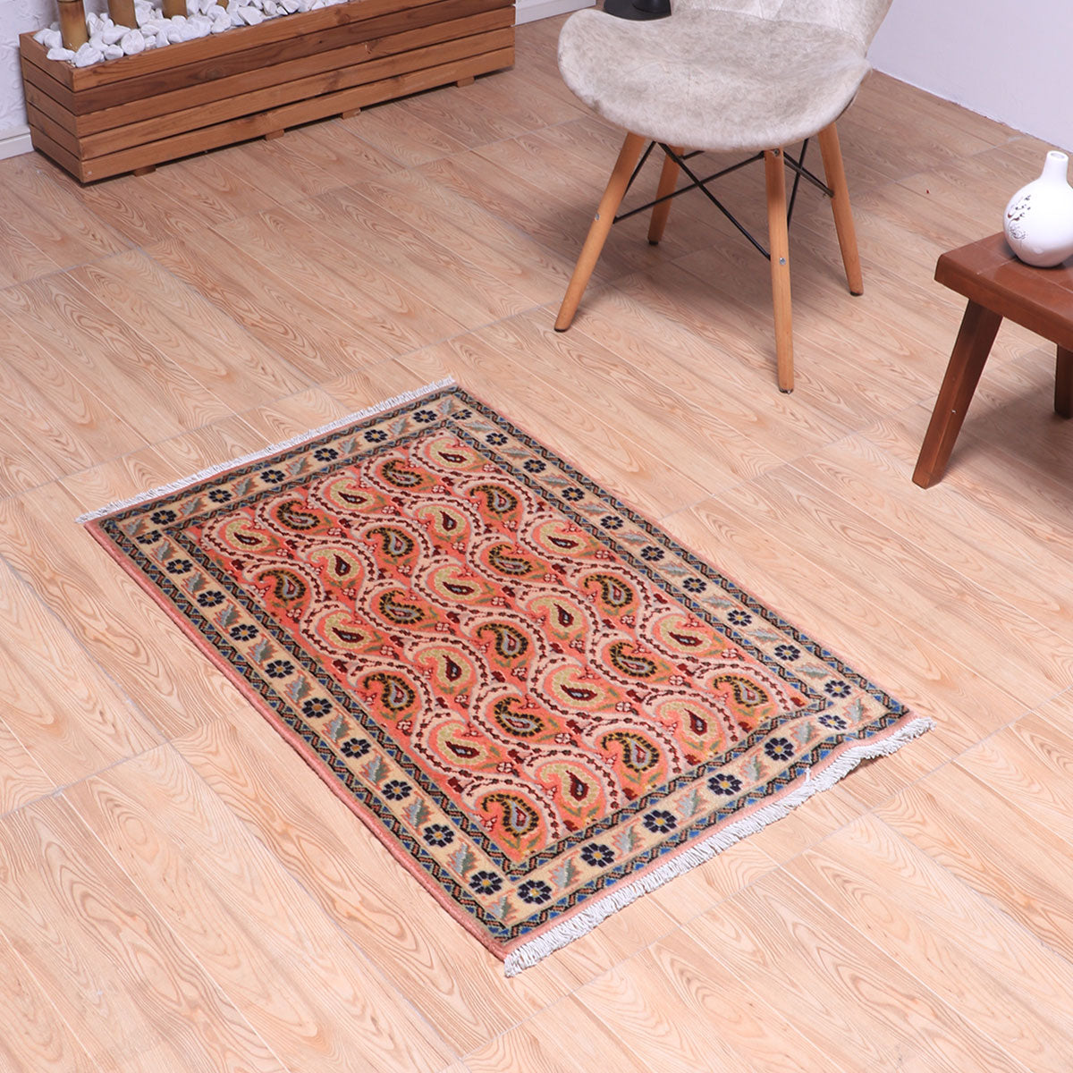 ・全体に流れるようなペイズリー(ボテ)文様が敷き詰められ、イスファハンらしい優雅さとアンティークの風合いが引き立ちます。