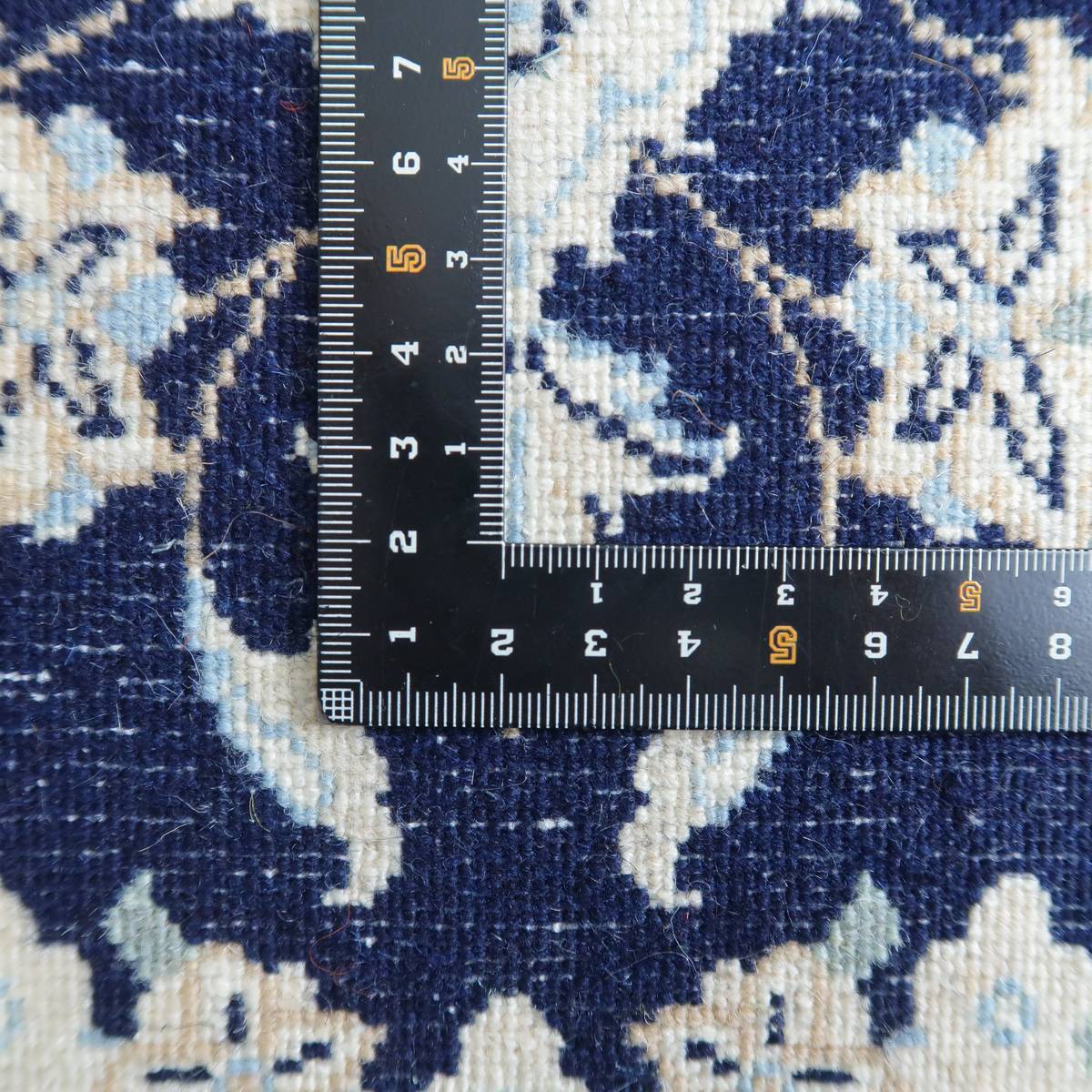 アイボリー×濃紺の爽やかな色合い。明るい白を基調にシンプルな色使いと安心感のある図柄で、親しみやすいデザインは、どこから見てもバランス良く見える王道のトランジ柄で、どのような場所、インテリアにもしっくりと馴染みます。程よくクッション性のある、ピンとしたハリのある毛足は、ふんわりした柔らかな手触りで、丁寧にきっちりと織られています。