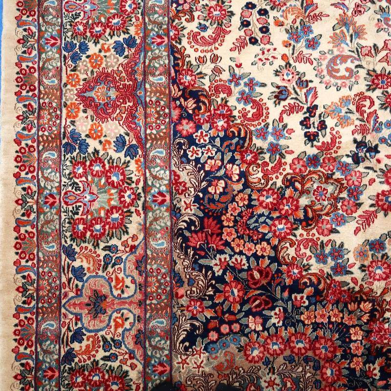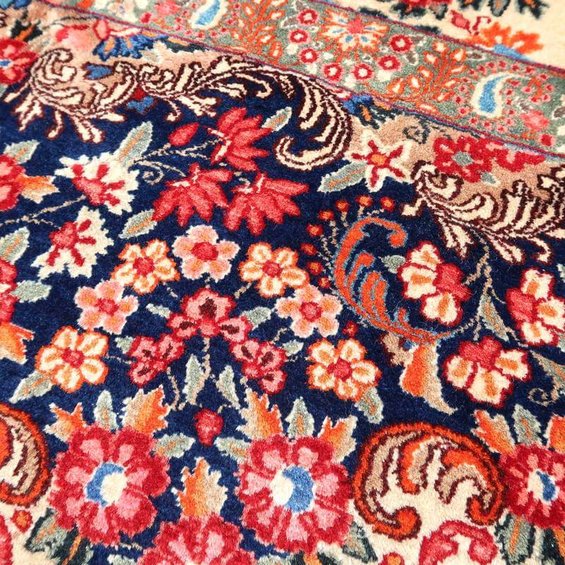 小さな補修、生地の摩耗などは年代物の特性としております。イラン式絨毯丸洗い洗浄を2回施した後メンテナンスをしています。汚れや破損のままのユーズド品ではございませんので新品と同等に安心してお使いいただけます。