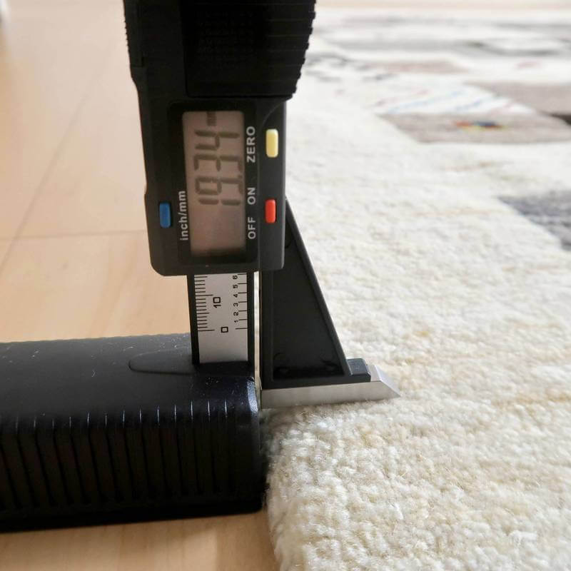 照明の違いで色合いが多少違って見えます。また、ギャッベは毛足に向きがあるので、見る方向で、明るかったり暗かったりも見えます。