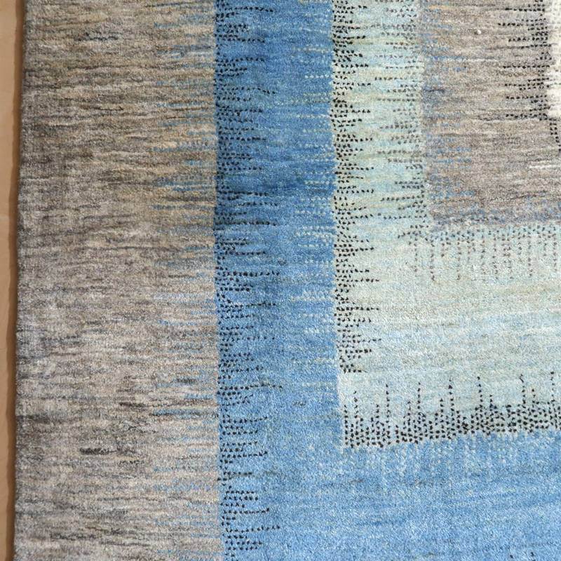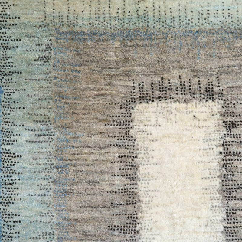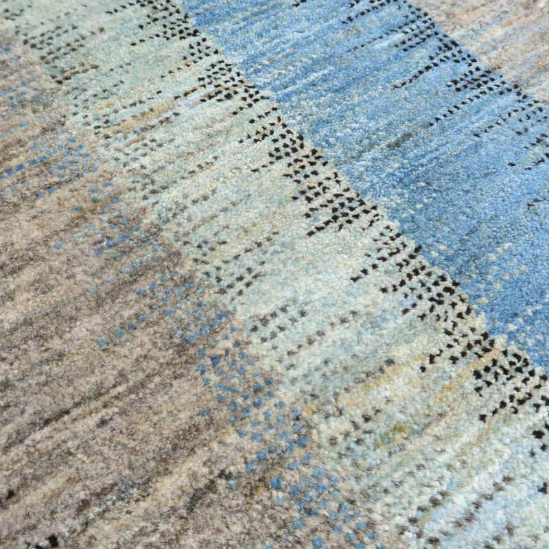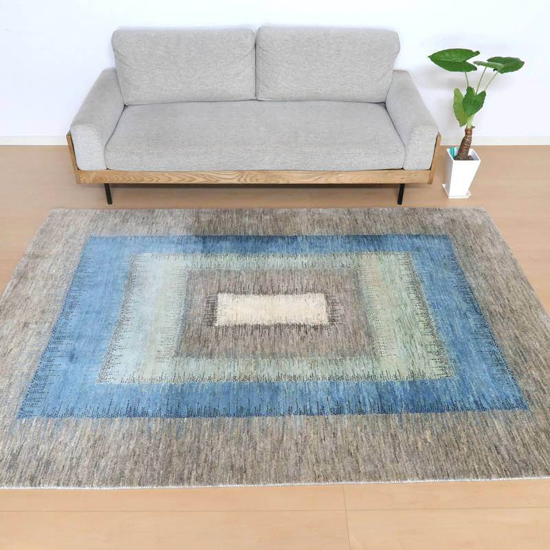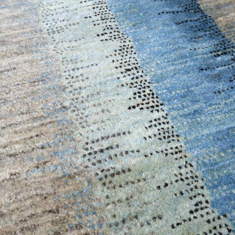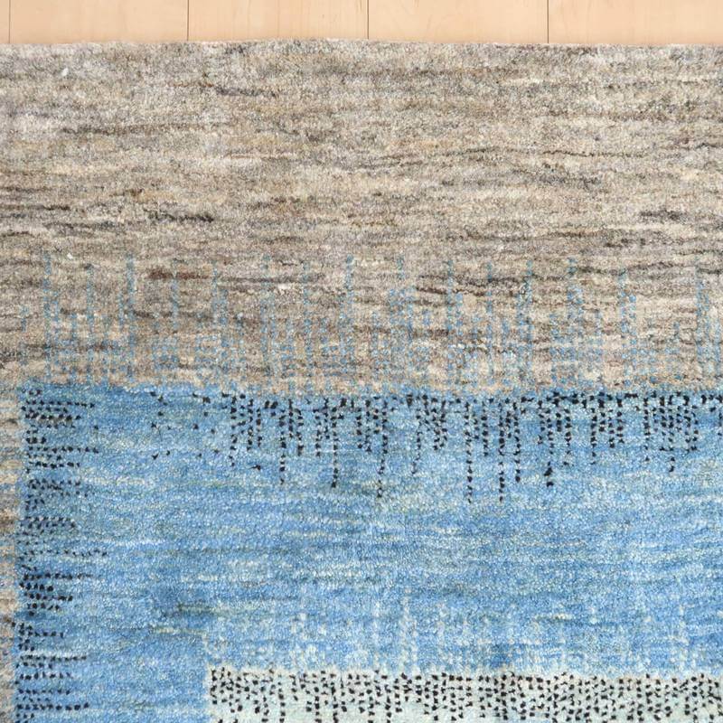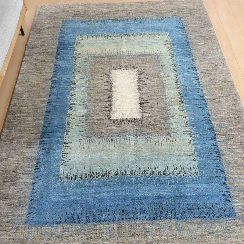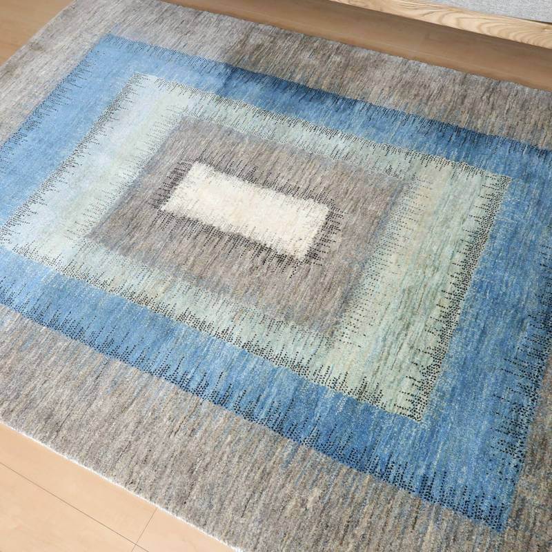刈り取った羊の毛を染めずにそのままの原毛の色合いを活かしたグレーベージュを基調としています。薄い空色はスモーキーな、くすみカラー。ドットでモダンにつながった、柔らかなアブラシ(色むらのグラデーション)の美しさを味わってください。暖かみのある木のインテリアでもモダンな空間でも馴染むスタイリッシュなアートデザインのギャッベ。冬毛の柔らかな最高部位のウールのみを使用して細かく編んだ最上級のソフトな手触りです。