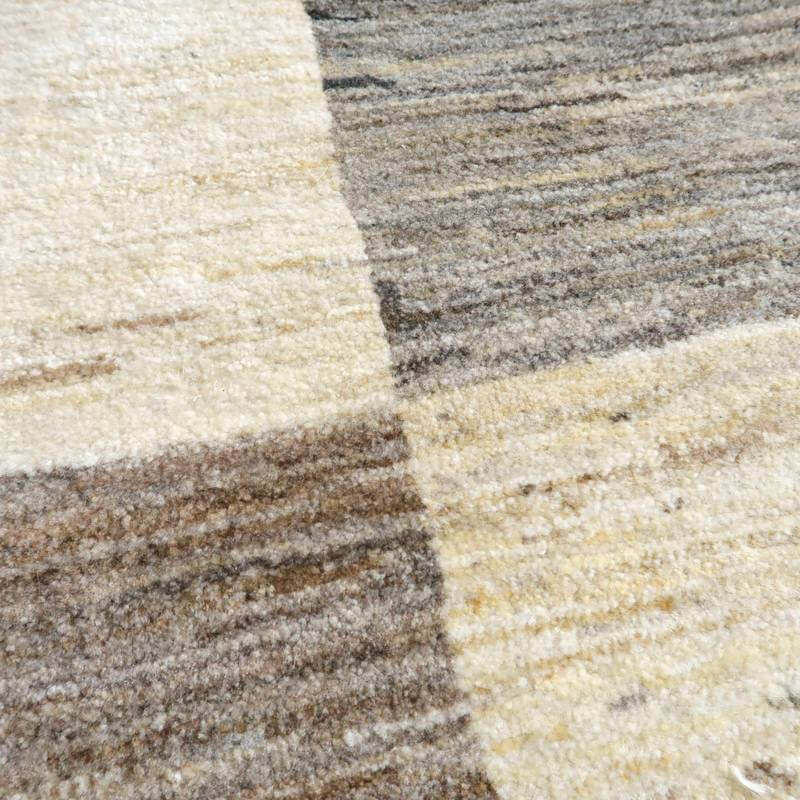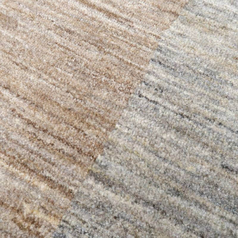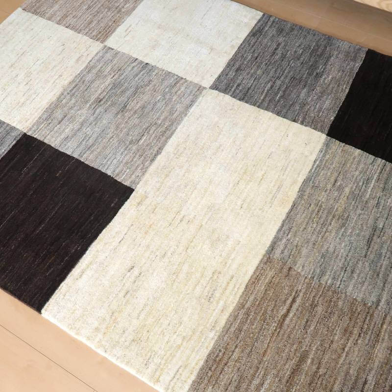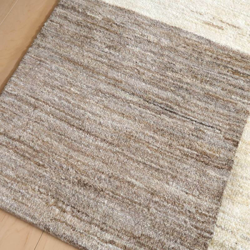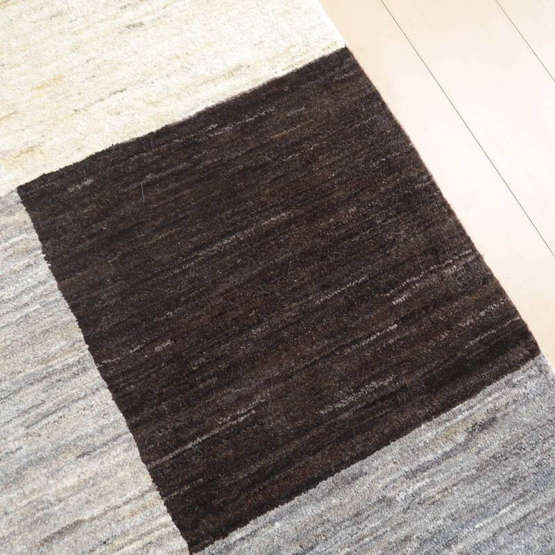 全てのウールは、刈り取ったままの羊の毛を染めずに、そのままの色を活かしているので、天然の羊の風合いが大きく感じられます。きれいな四角に分割された同系色の四角は、アブラシと呼ばれる色むらのグラデーションのつながり効果で全体にまとまりのある一体感を感じます。敷く場所を選ばないシンプルさ。冬毛の柔らかな最高部位のウールのみを使用して細かく編んだ最上級のソフトな手触り。生成りは比較的白っぽく、明るいカラーになります。