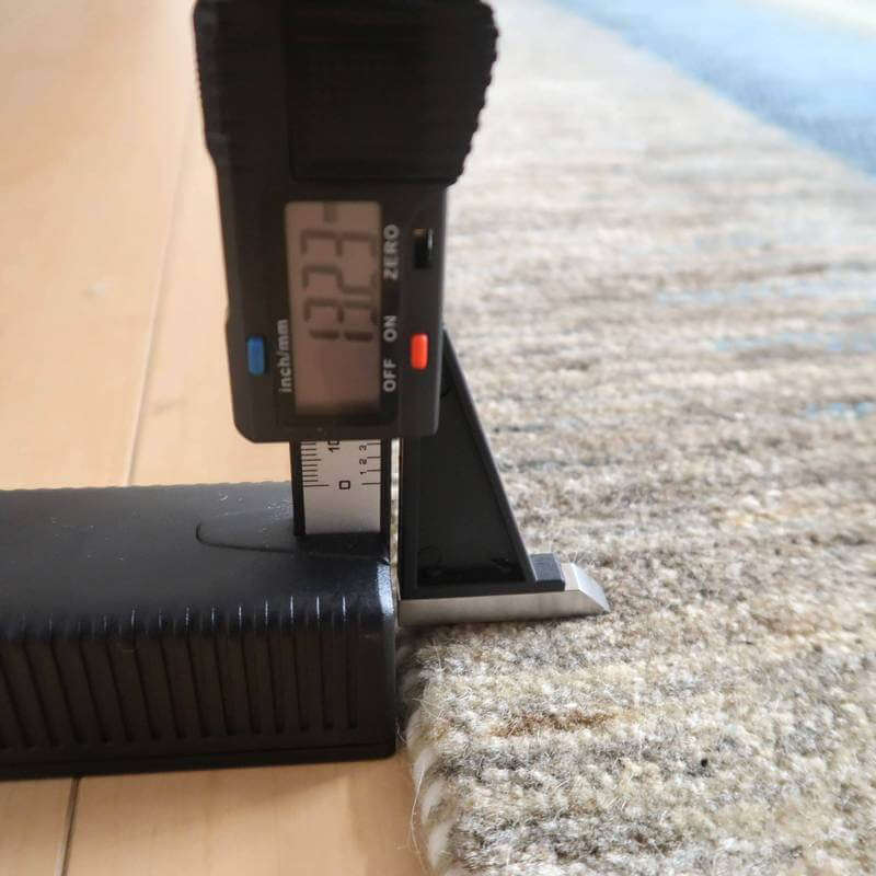 照明の違いで色合いが多少違って見えます。また、ギャッベは毛足に向きがあるので、見る方向で、明るかったり暗かったりも見えます。