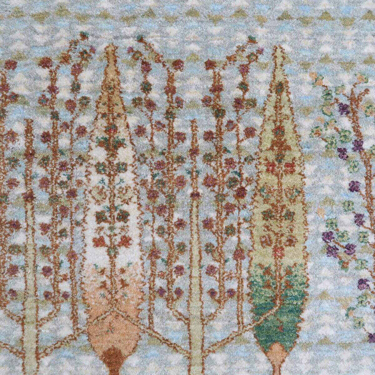 ベースの赤色にエンジ、橙、黄、グレーベージュ。同系色のつながりと各々のカラー自体のグラデーション共に大変美しい、モダンなアートデザインタイプです。 踏んだ時ふんわりと沈み込む踏み心地、ハリのある細やかな毛足は遊び毛も少なく、滑らかな良い手触りです。