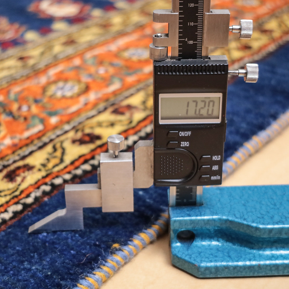 織りは、10cmあたり、およそ40から45目という普通のギャッベの数倍にもなる大変細かなルリバフ。細かく繊細なデザインで手触りはふわりと柔らか。やんわりと沈み込む踏み心地です。腕の良い選りすぐられた織り子だけが手掛ける極上の手仕事です。