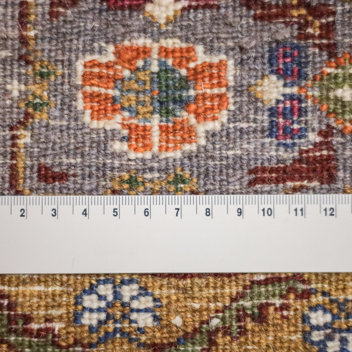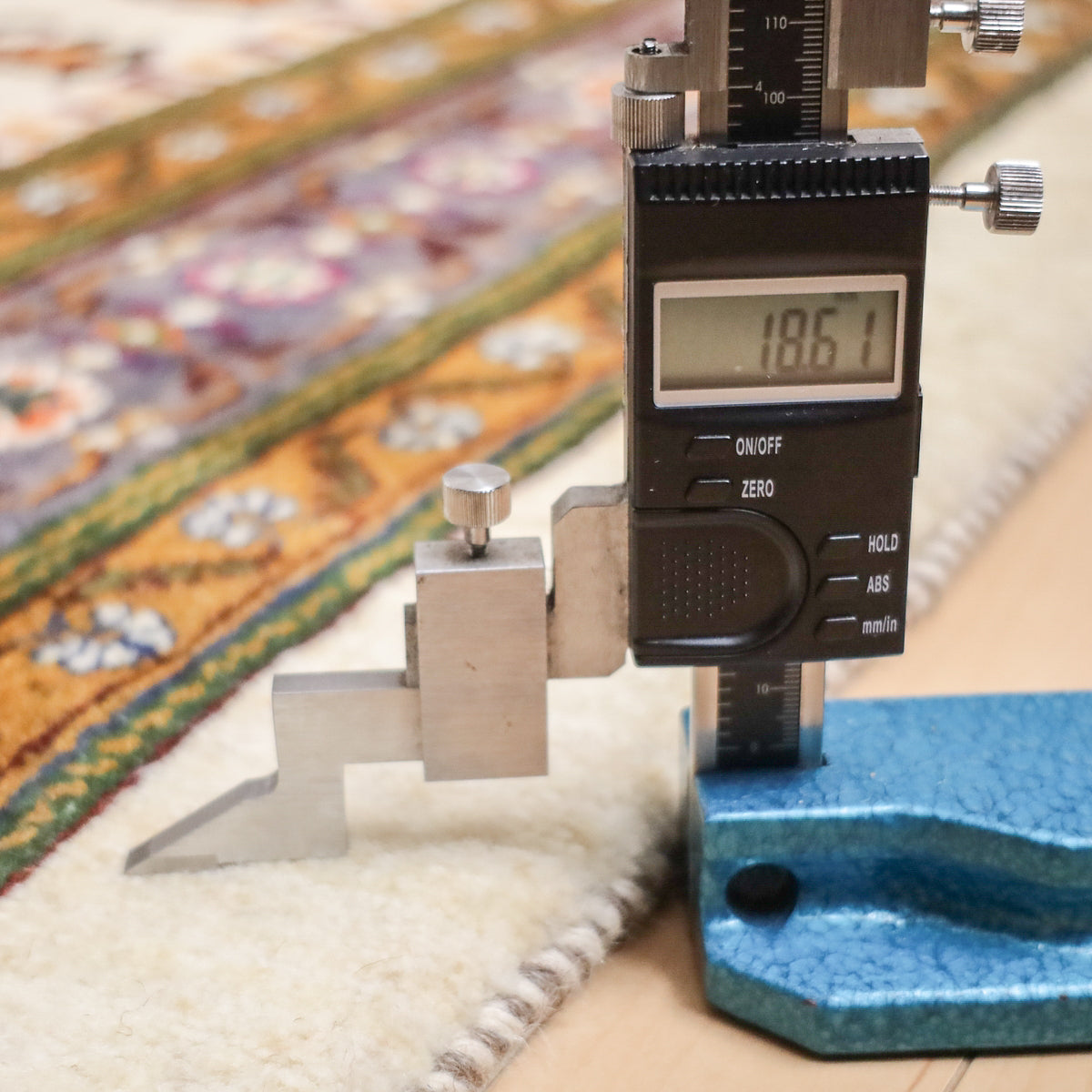 織りは、10cmあたり、およそ40から45目という普通のギャッベの数倍にもなる大変細かなルリバフ。細かく繊細なデザインで手触りはふわりと柔らか。やんわりと沈み込む踏み心地です。腕の良い選りすぐられた織り子だけが手掛ける極上の手仕事です。