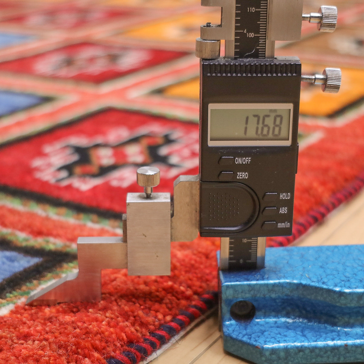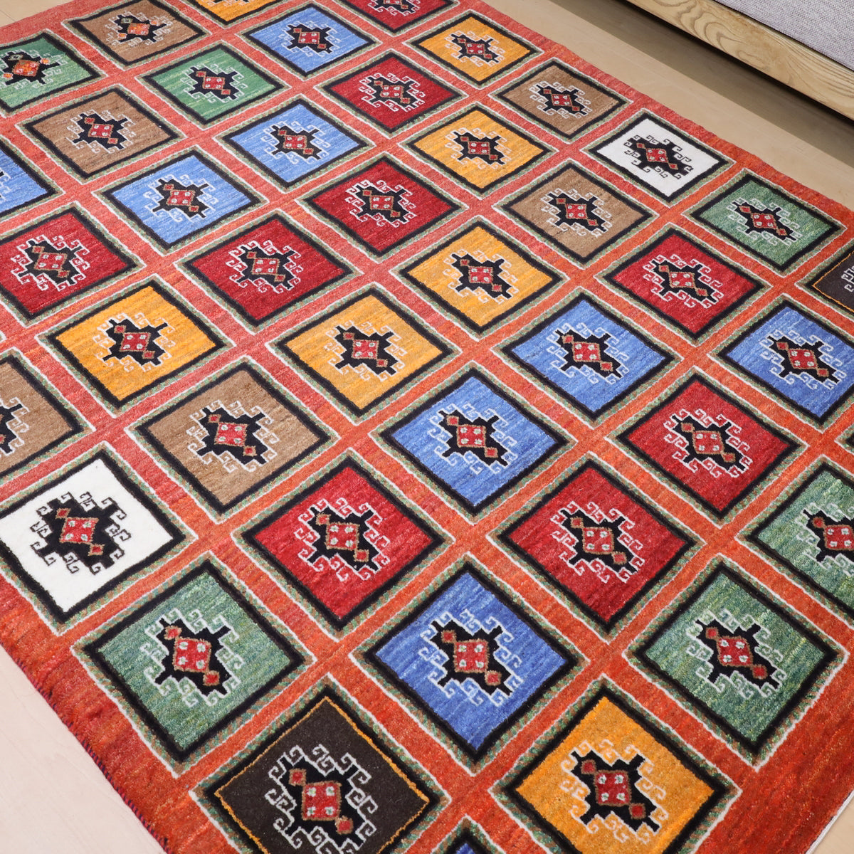 ルリ族の織る「ルリバフ」と呼ばれるギャッベです。織りは、10cmあたり、およそ40から45目という普通のギャッベの数倍にもなる大変細かなルリバフ。細かく繊細なデザインで手触りはふわりと柔らか。やんわりと沈み込む踏み心地です。腕の良い選りすぐられた織り子だけが手掛ける極上の手仕事です。