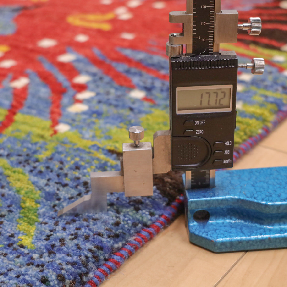 ルリ族の織る「ルリバフ」と呼ばれるギャッベです。織りは、10cmあたり、およそ40から45目という普通のギャッベの数倍にもなる大変細かなルリバフ。細かく繊細なデザインで手触りはふわりと柔らか。やんわりと沈み込む踏み心地です。腕の良い選りすぐられた織り子だけが手掛ける極上の手仕事です。