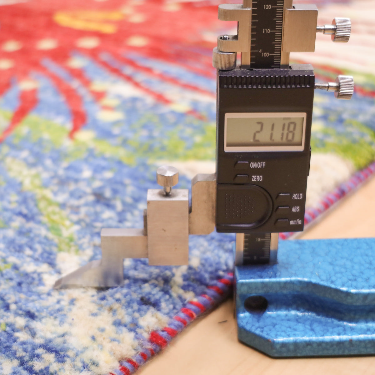 ルリ族の織る「ルリバフ」と呼ばれるギャッベです。織りは、10cmあたり、およそ40から45目という普通のギャッベの数倍にもなる大変細かなルリバフ。細かく繊細なデザインで手触りはふわりと柔らか。やんわりと沈み込む踏み心地です。腕の良い選りすぐられた織り子だけが手掛ける極上の手仕事です。