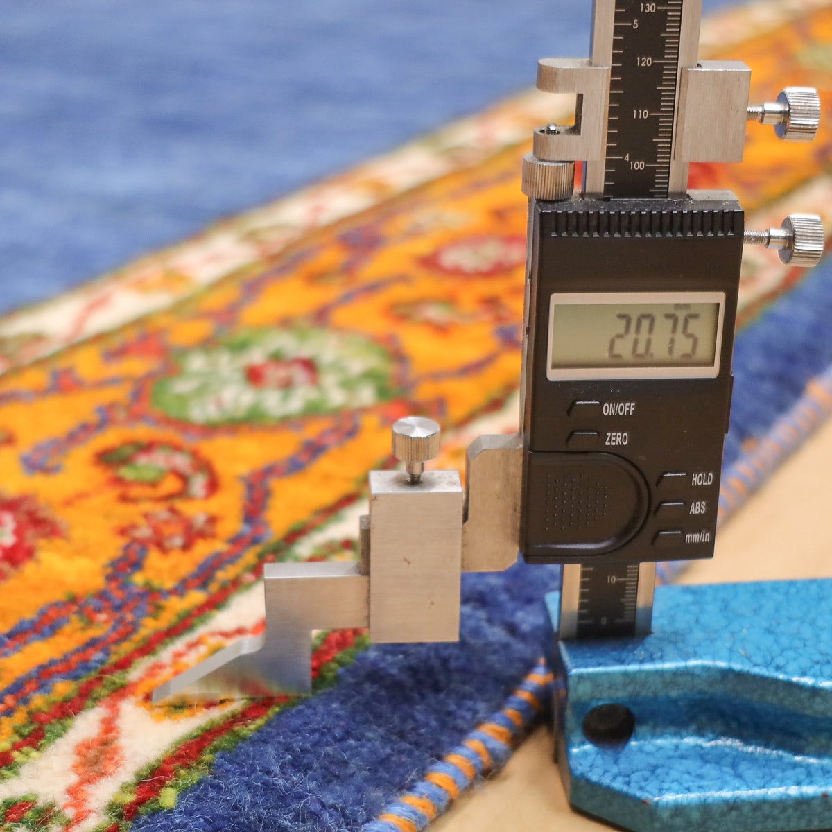 ルリ族の織る「ルリバフ」と呼ばれるギャッベです。織りは、10cmあたり、およそ40から45目という普通のギャッベの数倍にもなる大変細かなルリバフ。細かく繊細なデザインで手触りはふわりと柔らか。やんわりと沈み込む踏み心地です。腕の良い選りすぐられた織り子だけが手掛ける極上の手仕事です。