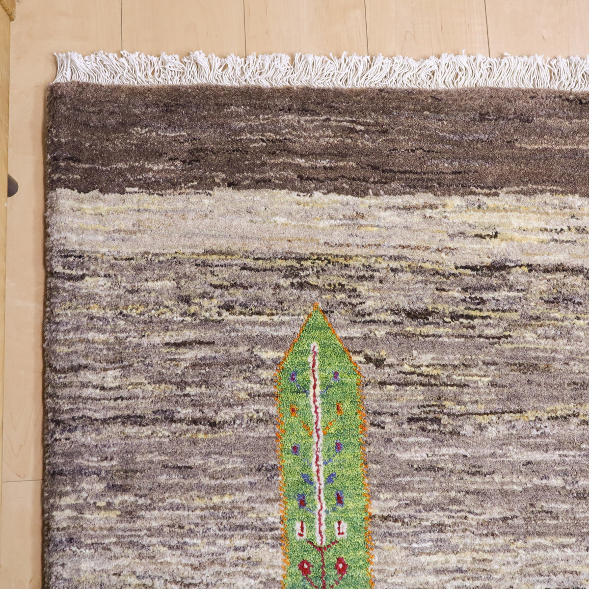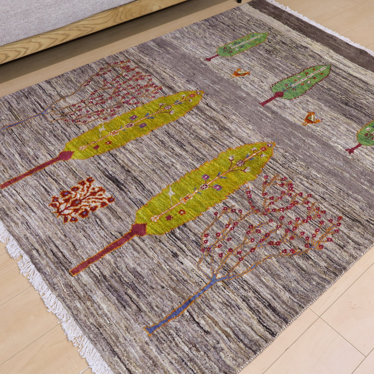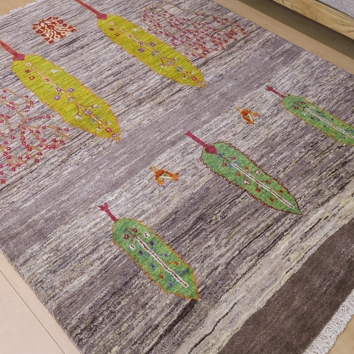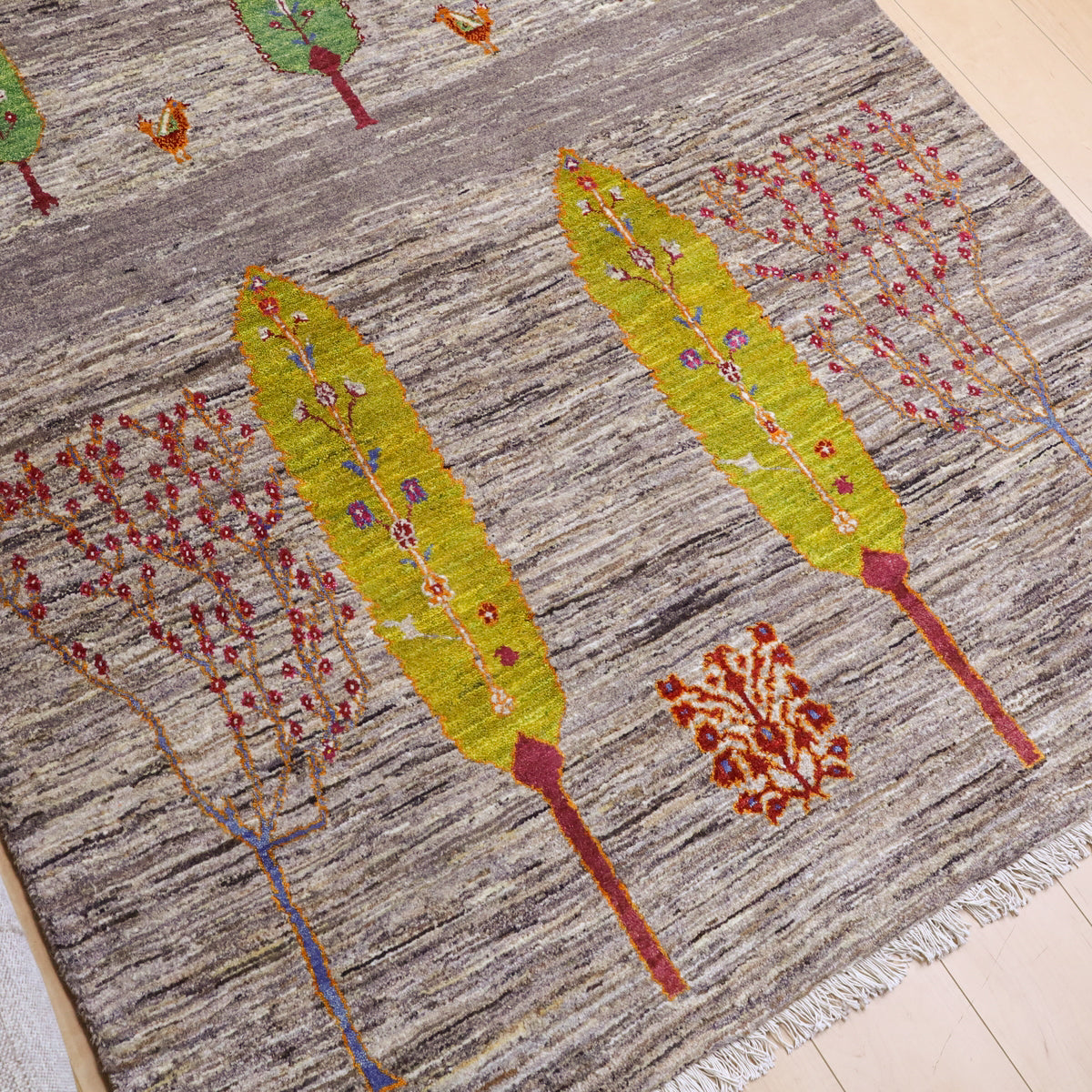ルリ族の織る「ルリバフ」と呼ばれるギャッベです。織りは、10cmあたり、およそ40から45目という普通のギャッベの数倍にもなる大変細かなルリバフ。細かく繊細なデザインで手触りはふわりと柔らか。やんわりと沈み込む踏み心地です。腕の良い選りすぐられた織り子だけが手掛ける極上の手仕事です。