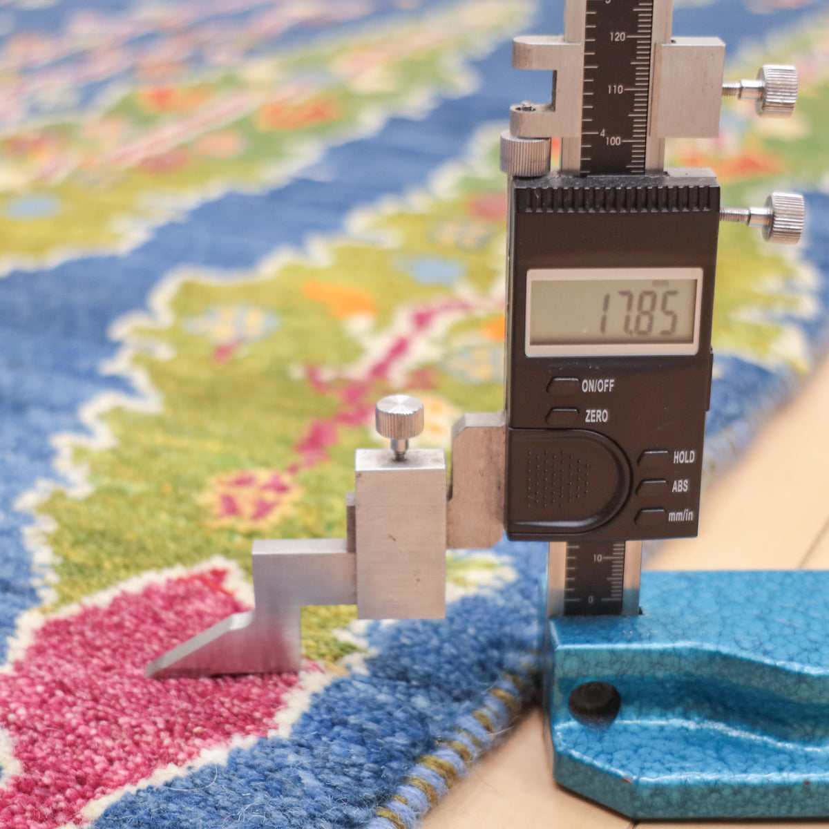 ルリ族の織る「ルリバフ」と呼ばれるギャッベです。織りは、10cmあたり、およそ40から45目という普通のギャッベの数倍にもなる大変細かなルリバフ。細かく繊細なデザインで手触りはふわりと柔らか。やんわりと沈み込む踏み心地です。腕の良い選りすぐられた織り子だけが手掛ける極上の手仕事です。