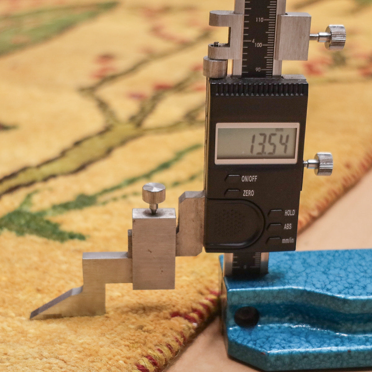 ルリ族の織る「ルリバフ」と呼ばれるギャッベです。織りは、10cmあたり、およそ40から45目という普通のギャッベの数倍にもなる大変細かなルリバフ。細かく繊細なデザインで手触りはふわりと柔らか。やんわりと沈み込む踏み心地です。腕の良い選りすぐられた織り子だけが手掛ける極上の手仕事です。