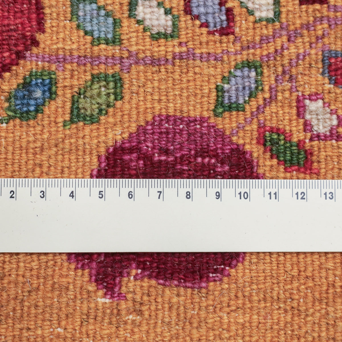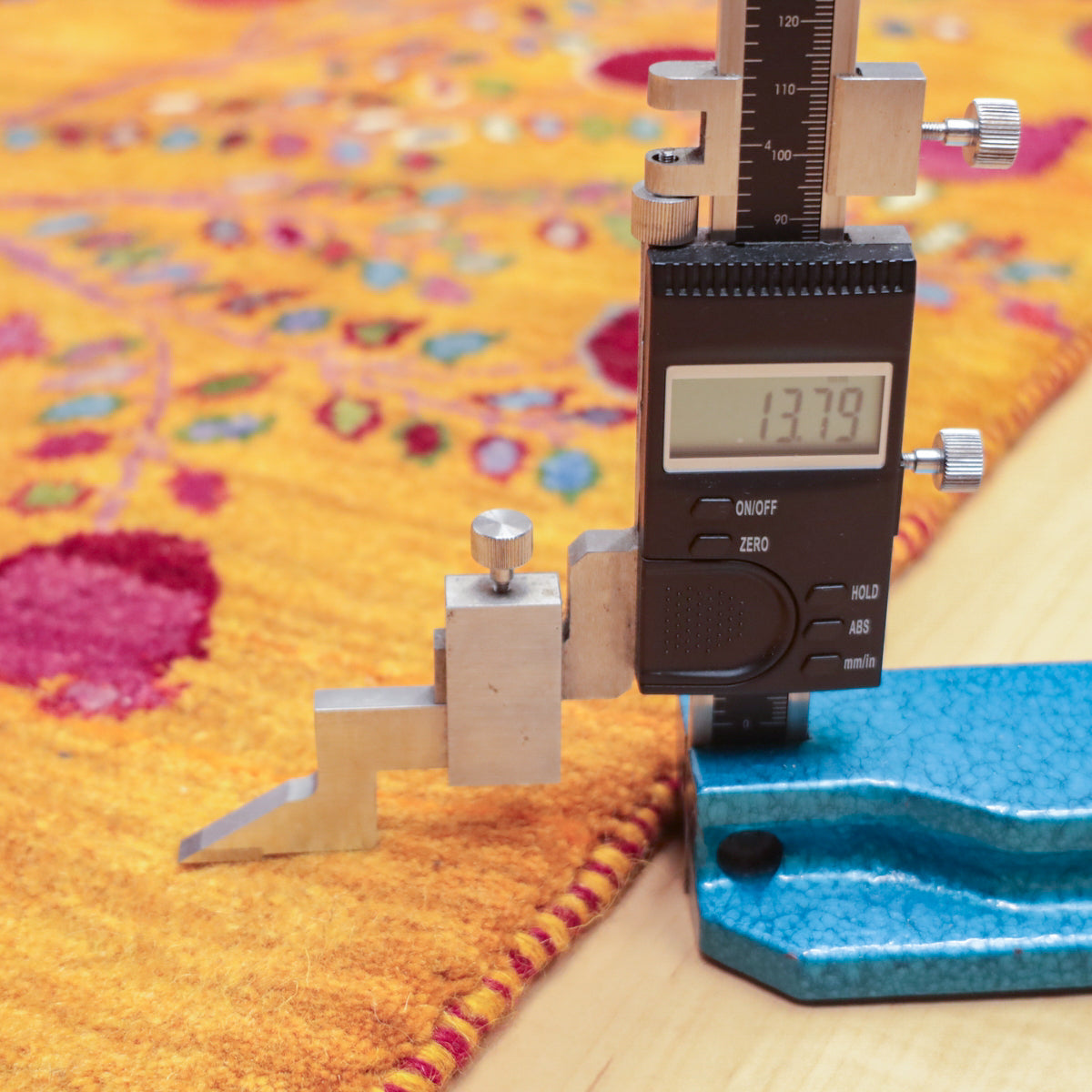 織りは、10cmあたり、およそ40から45目という普通のギャッベの数倍にもなる大変細かなルリバフ。細かく繊細なデザインで手触りはふわりと柔らか。やんわりと沈み込む踏み心地です。腕の良い選りすぐられた織り子だけが手掛ける極上の手仕事です。