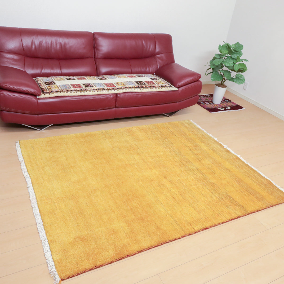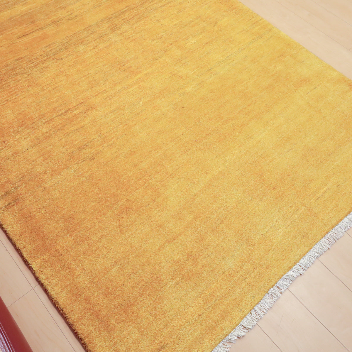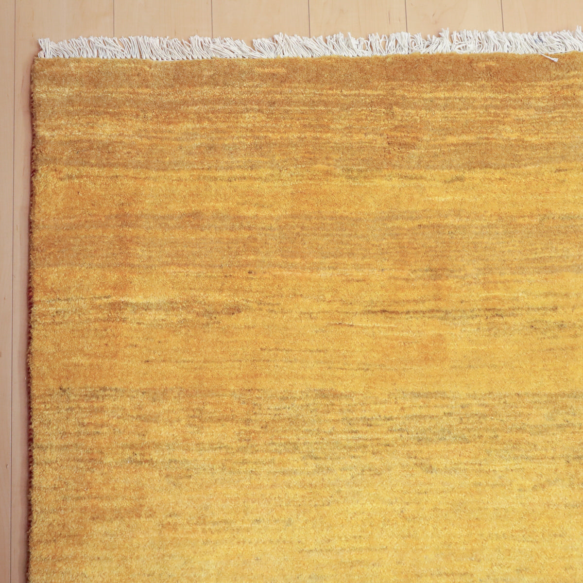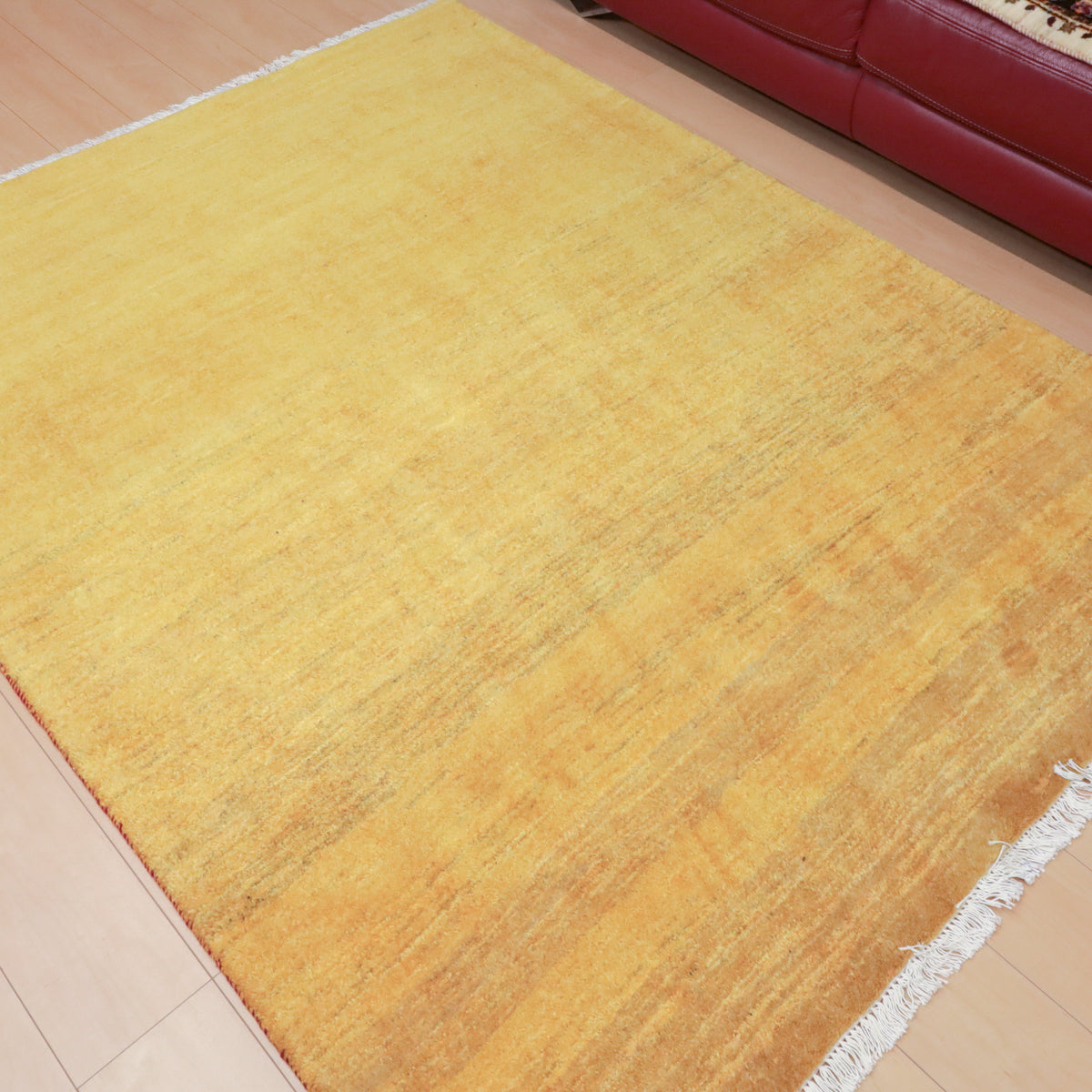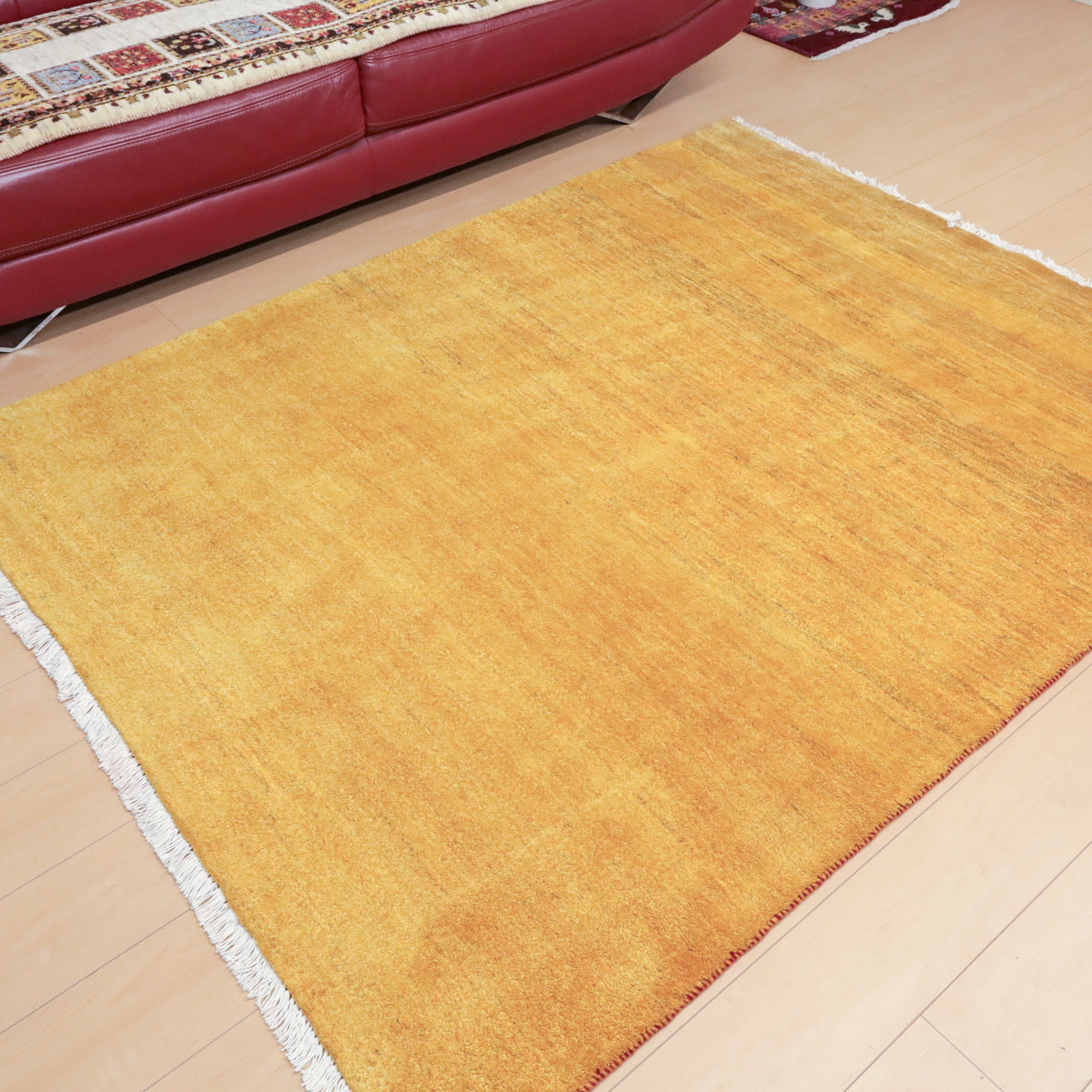 温かみのある黄色のシンプルな無地のギャッベです。やんわりと変化する濃淡のグラデーションがギャッベらしい色の揺らぎとして楽しめます。