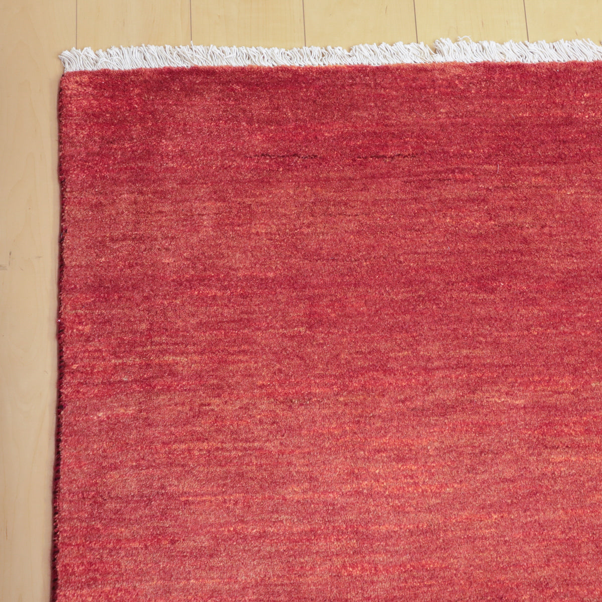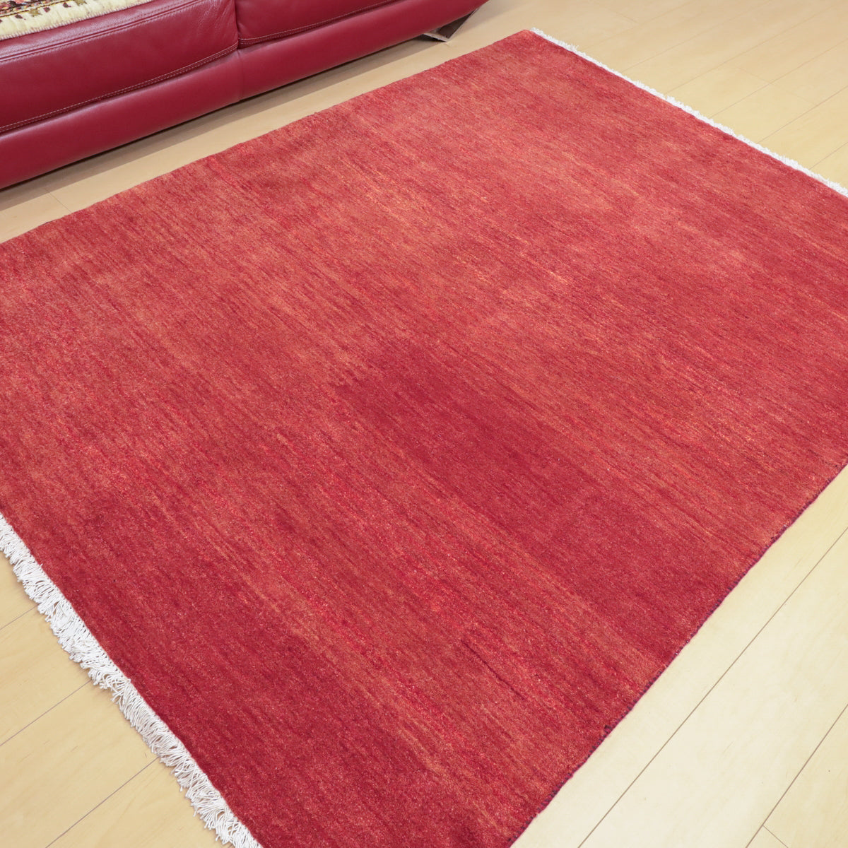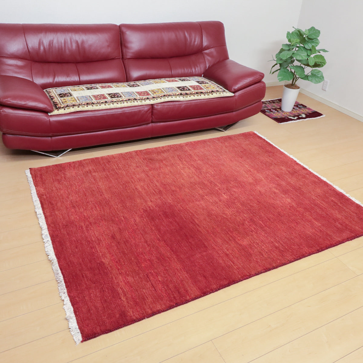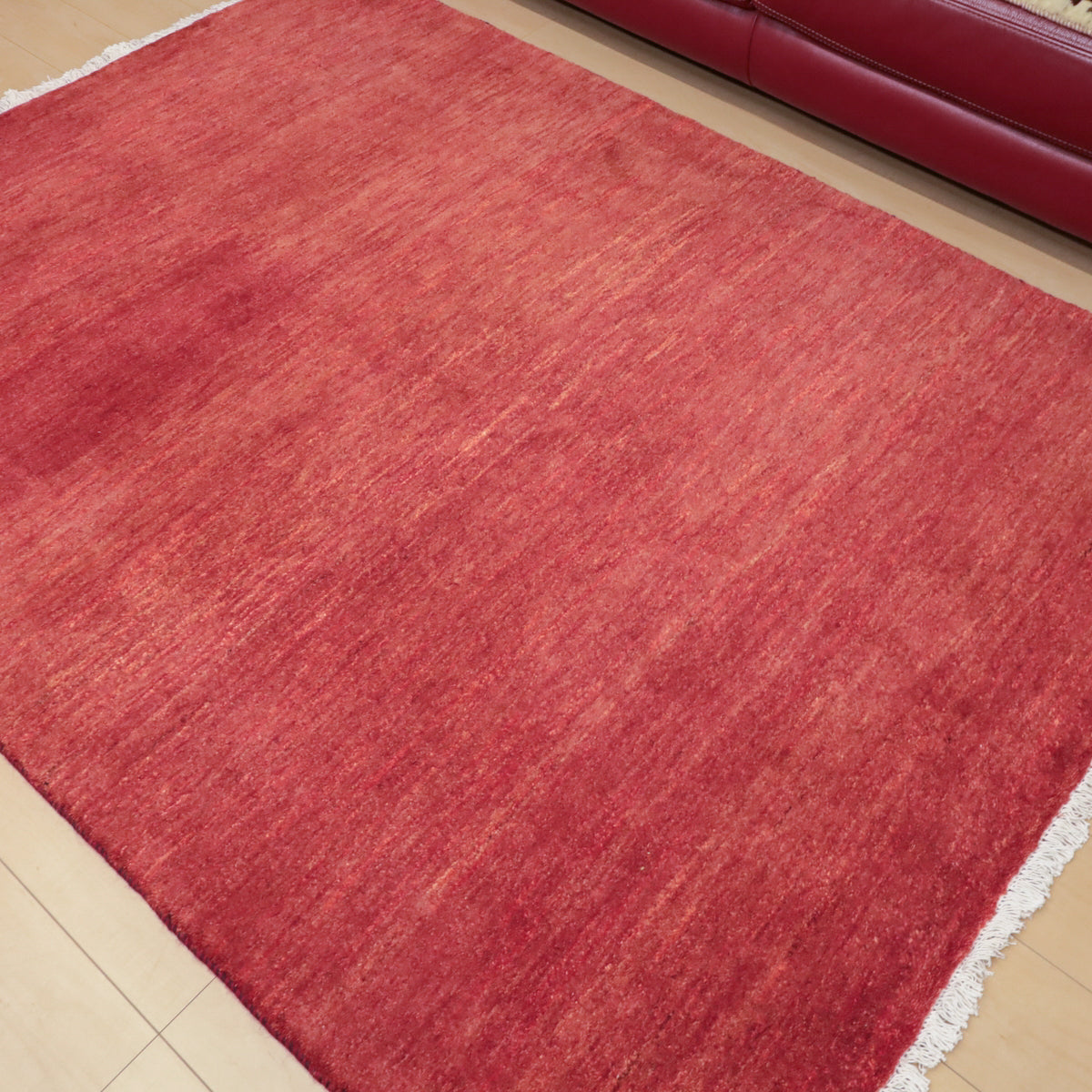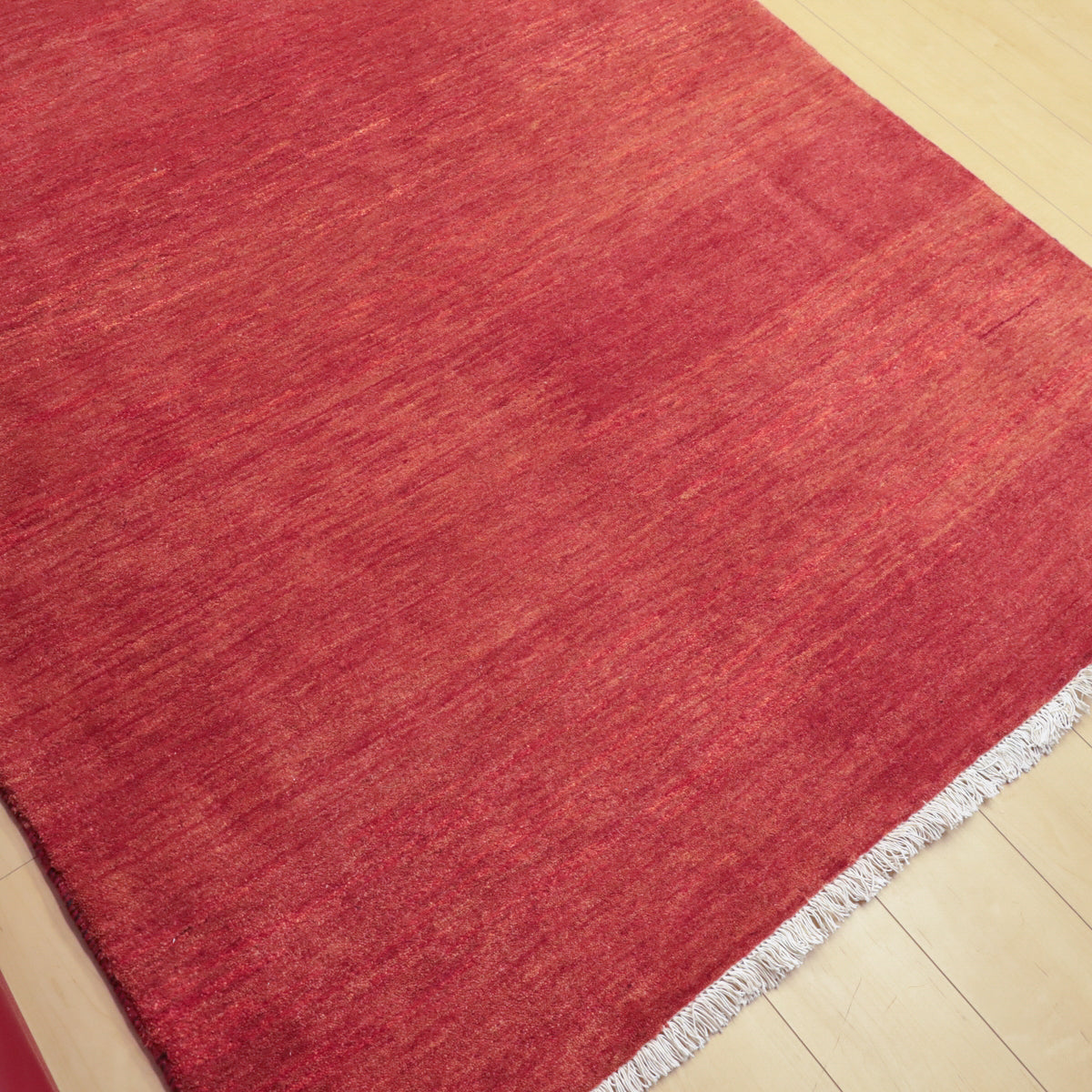 自然からとった赤色といった落ち着きのある色合いは草木染めならではの温かみのあるカラー。やんわりと変化する濃淡のグラデーションを楽しむようなシンプルな無地のギャッベです。