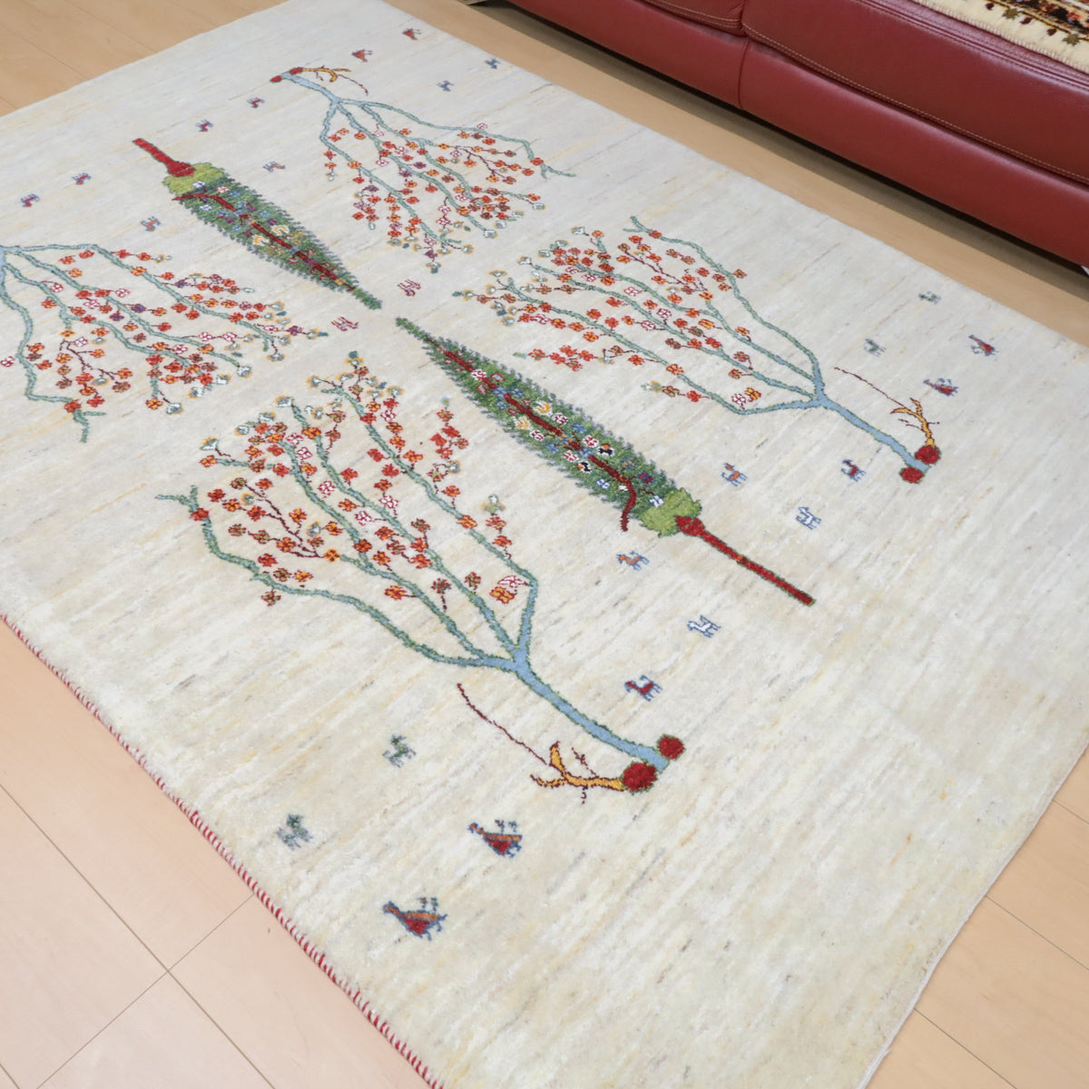 ルリ族によって織られる「ルリバフ」というギャッベは、通常のギャッベの織り目よりもはるかに細かく織られています。ルリバフは高い技術を持つ選ばれた織り子だけが手掛けることができ、デザインは細やかで柔らかなウール素材、やんわりと沈み込む快適な踏み心地のハイランクな上質ギャッベです。