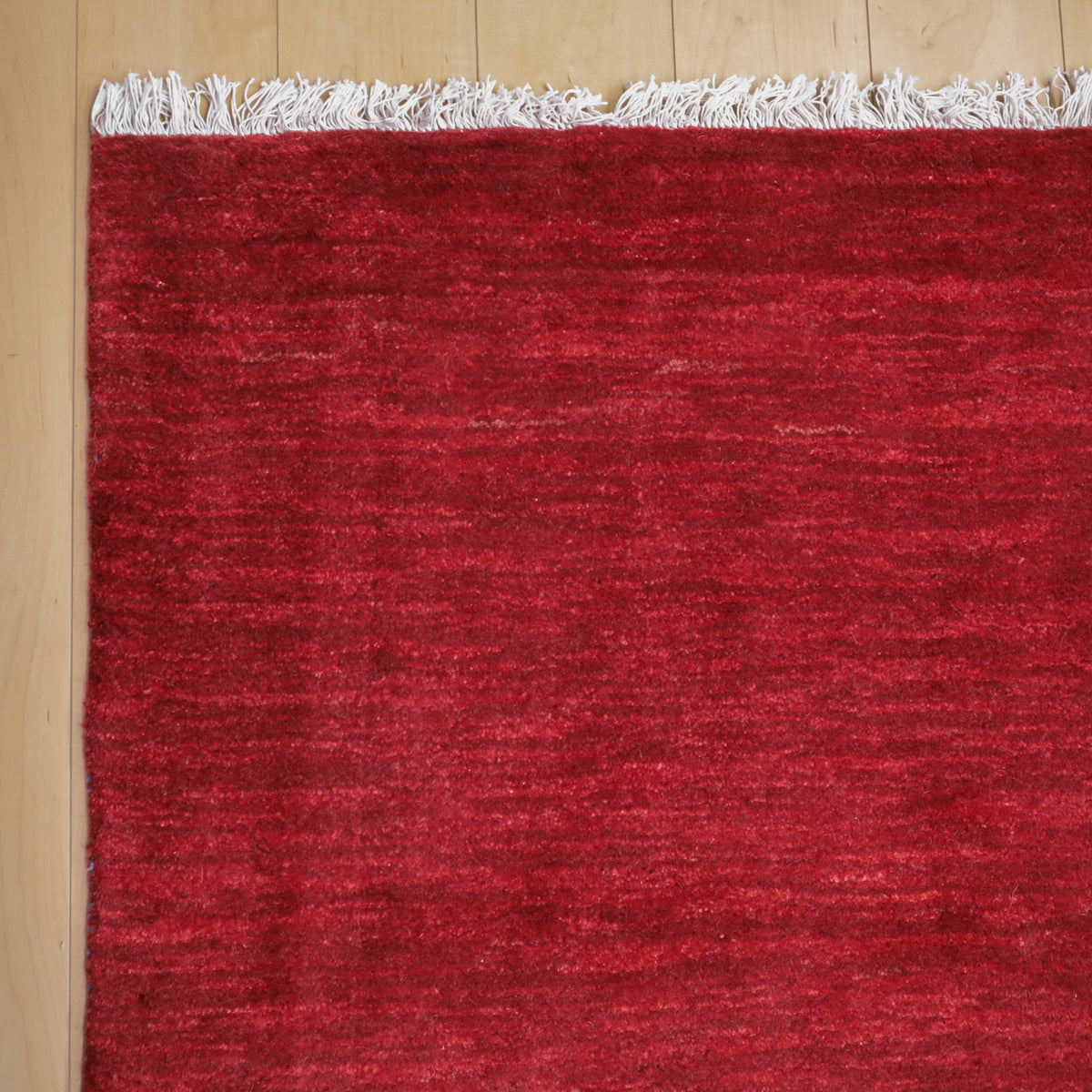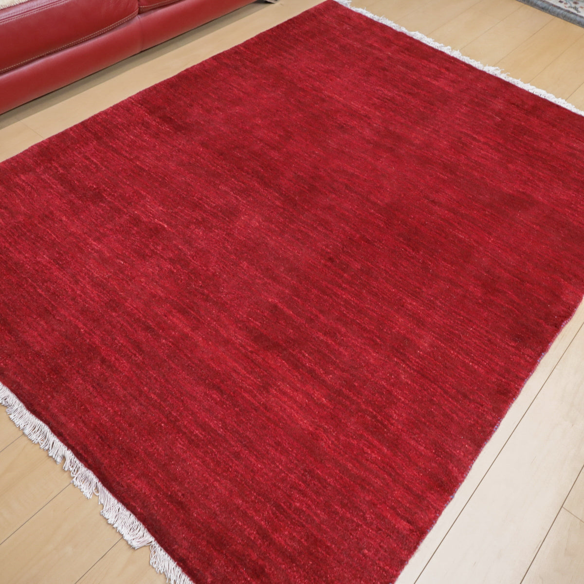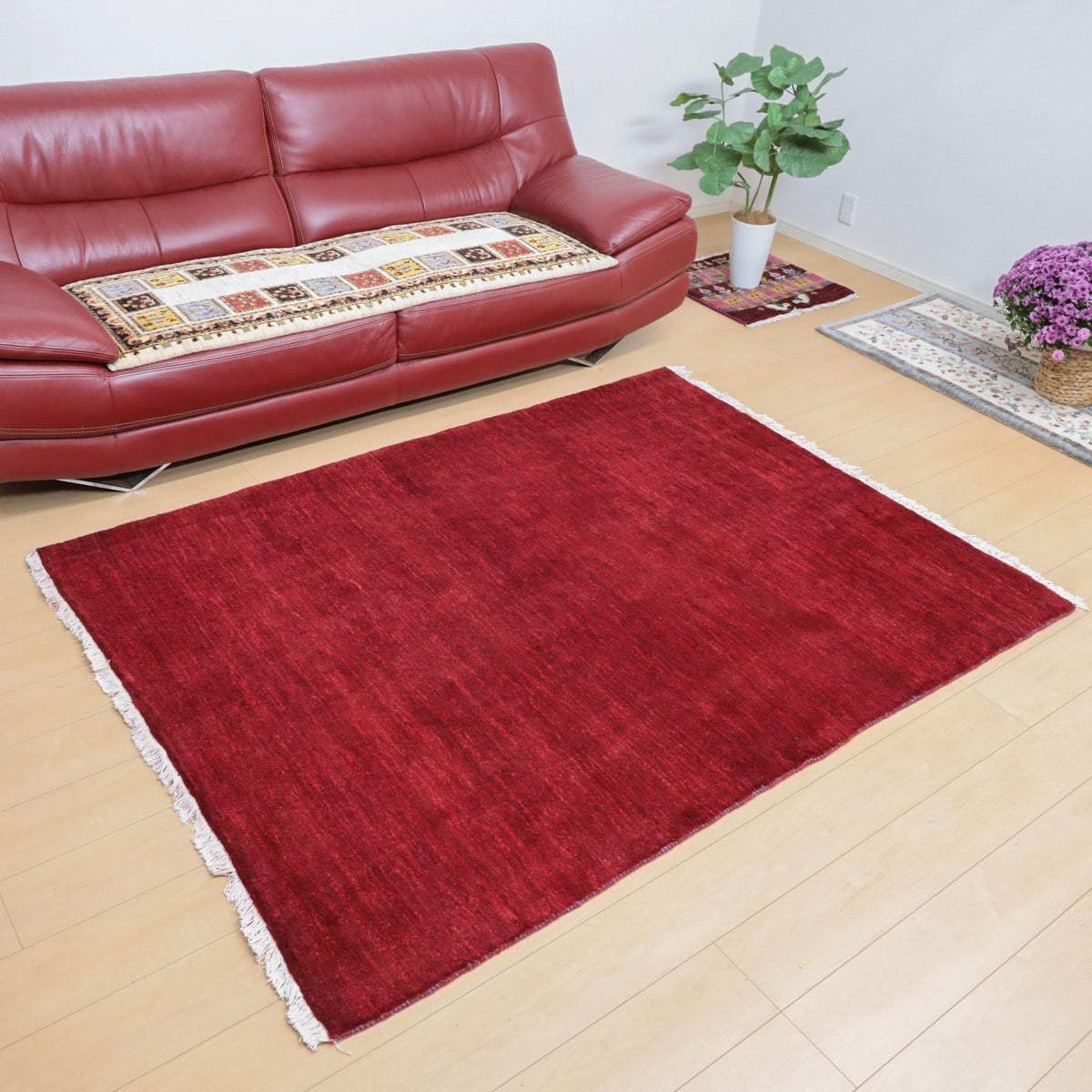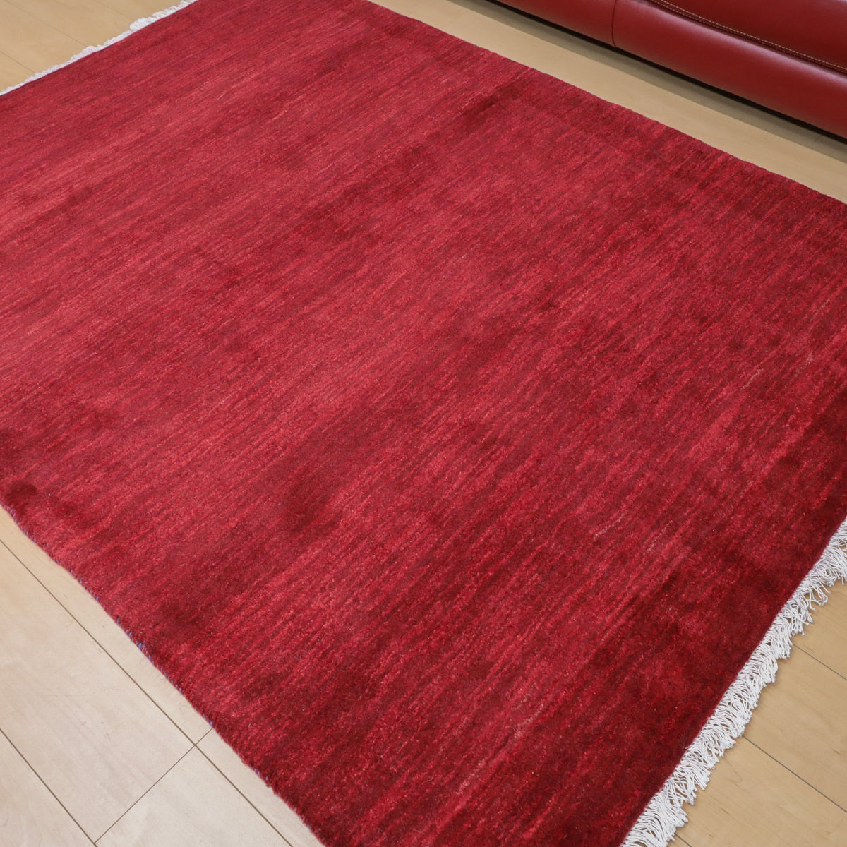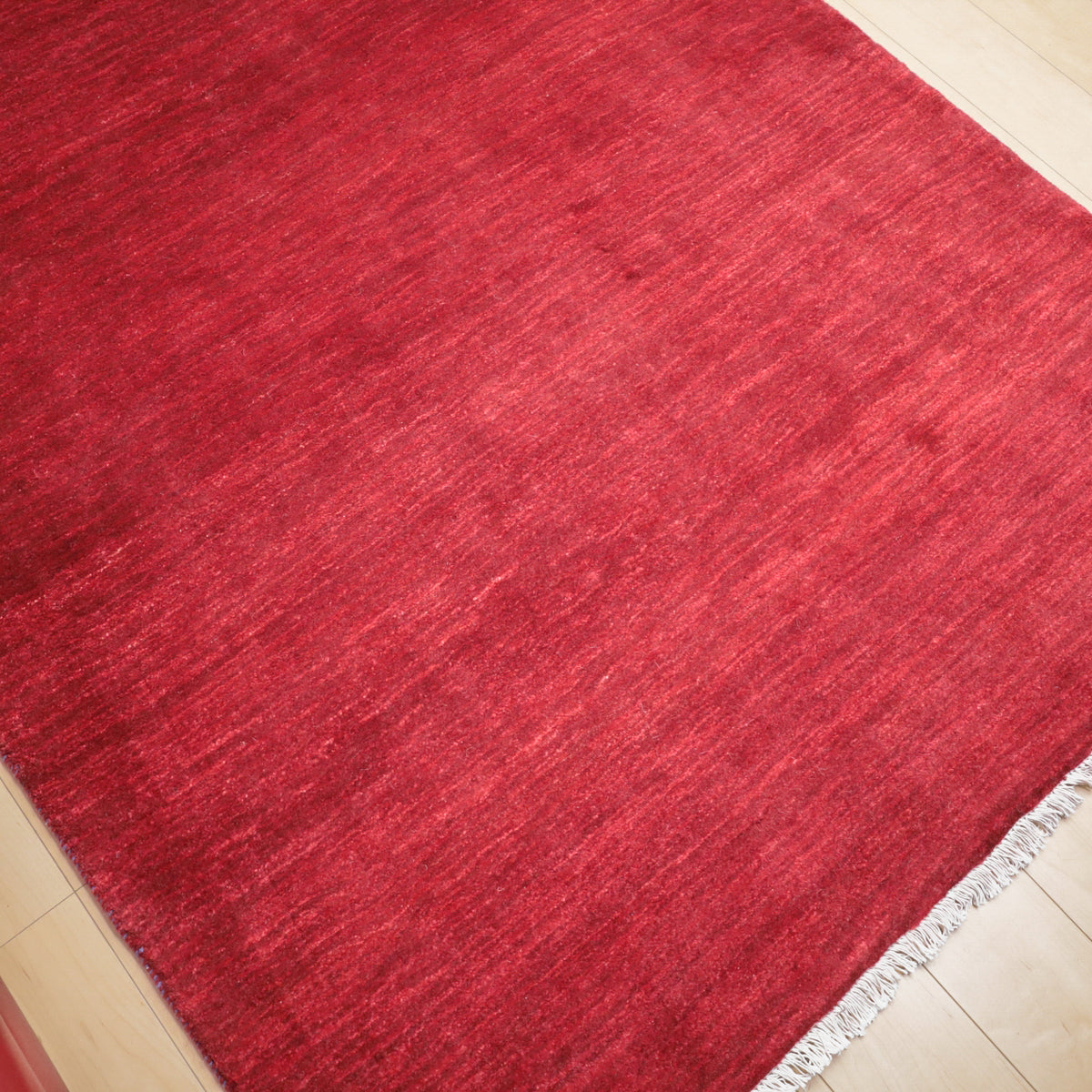 草木染めならではの濃い赤色が落ち着きのあるカラー。やんわりと変化する濃淡のグラデーションを楽しむようなシンプルな無地のギャッベです。細かなアブラシ(色のグラデーション)が全体に入って、イランのギャッベならではの美しい色の揺らぎを楽しむようなお品です。
