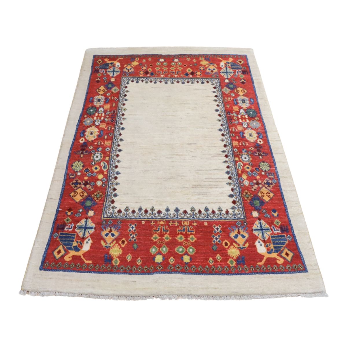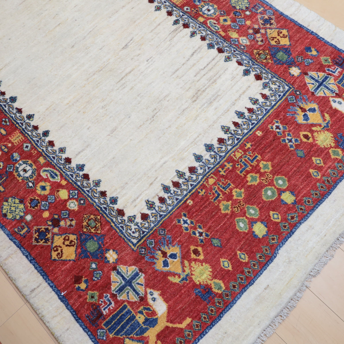 ルリ族によって織られる「ルリバフ」というギャッベは、通常のギャッベの織り目よりもはるかに細かく織られています。ルリバフは高い技術を持つ選ばれた織り子だけが手掛けることができ、デザインは細やかで柔らかなウール素材、やんわりと沈み込む快適な踏み心地のハイランクな上質ギャッベです。