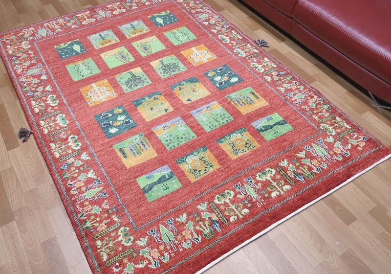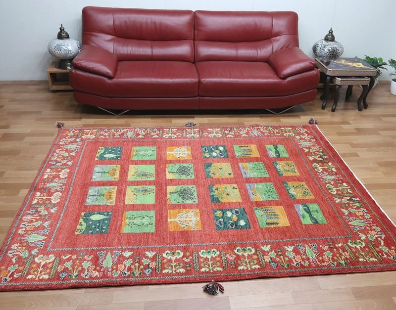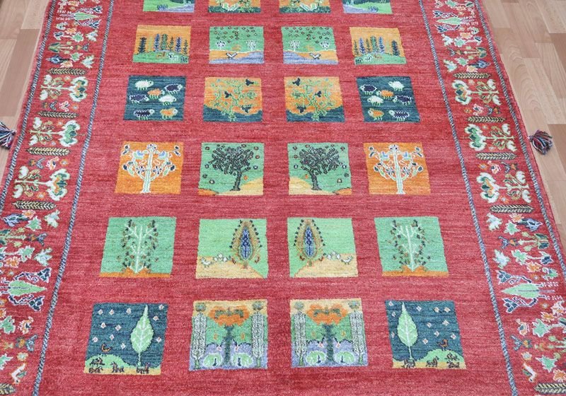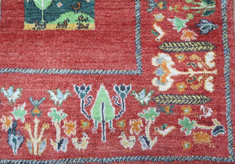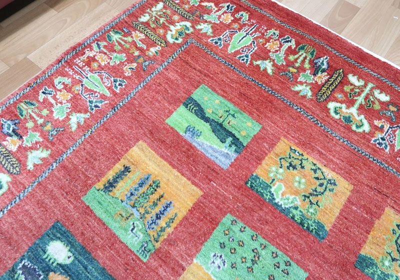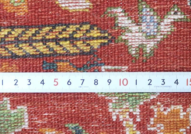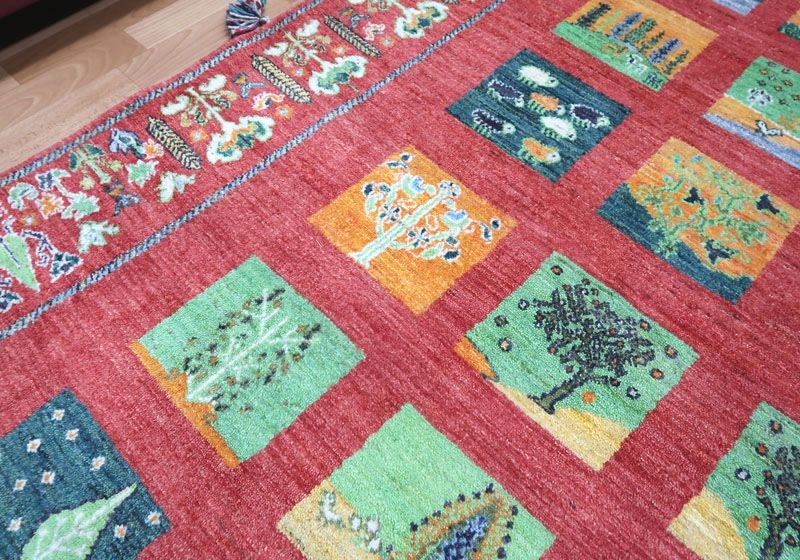 織りは、10cmあたり、およそ40から45目という普通のギャッベの数倍にもなる大変細かなルリバフ。抜け毛が少なく、手触りはふわりと柔らか。踏んだ時やんわりと沈み込む踏み心地です。腕の良い選りすぐられた織り子だけが手掛ける極上の手仕事です。