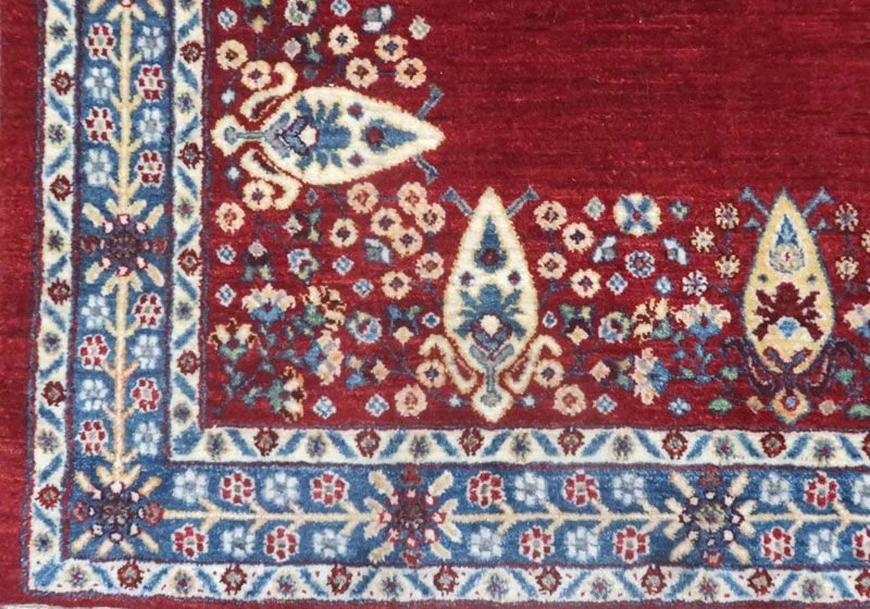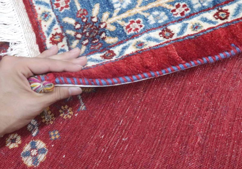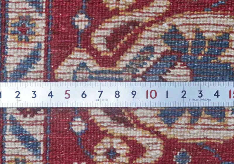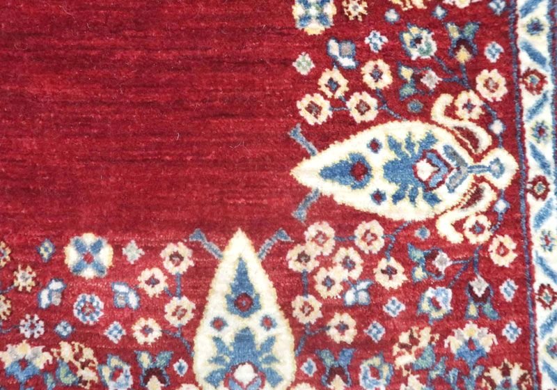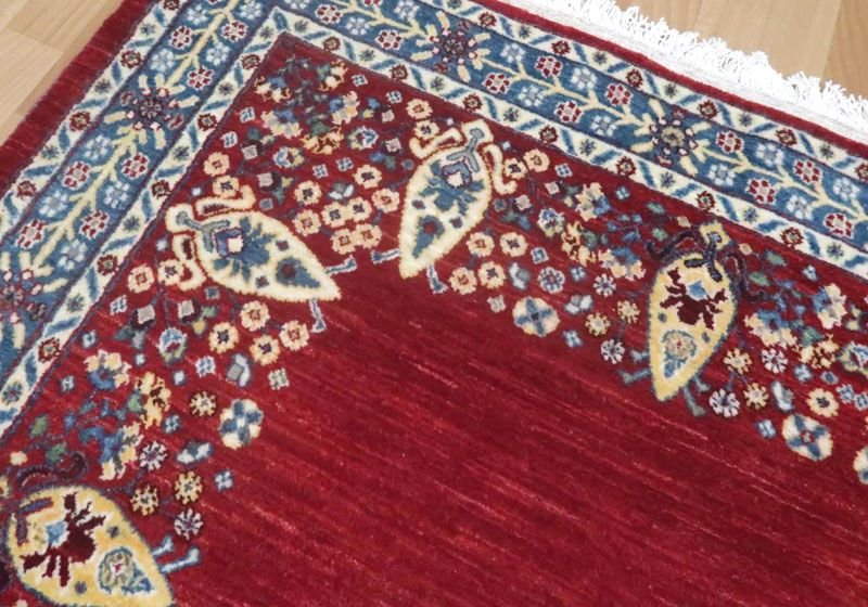 織りは、10cmあたり、およそ40から45目という普通のギャッベの数倍にもなる大変細かなルリバフ。抜け毛が少なく、手触りはふわりと柔らか。踏んだ時やんわりと沈み込む踏み心地です。腕の良い選りすぐられた織り子だけが手掛ける極上の手仕事です。