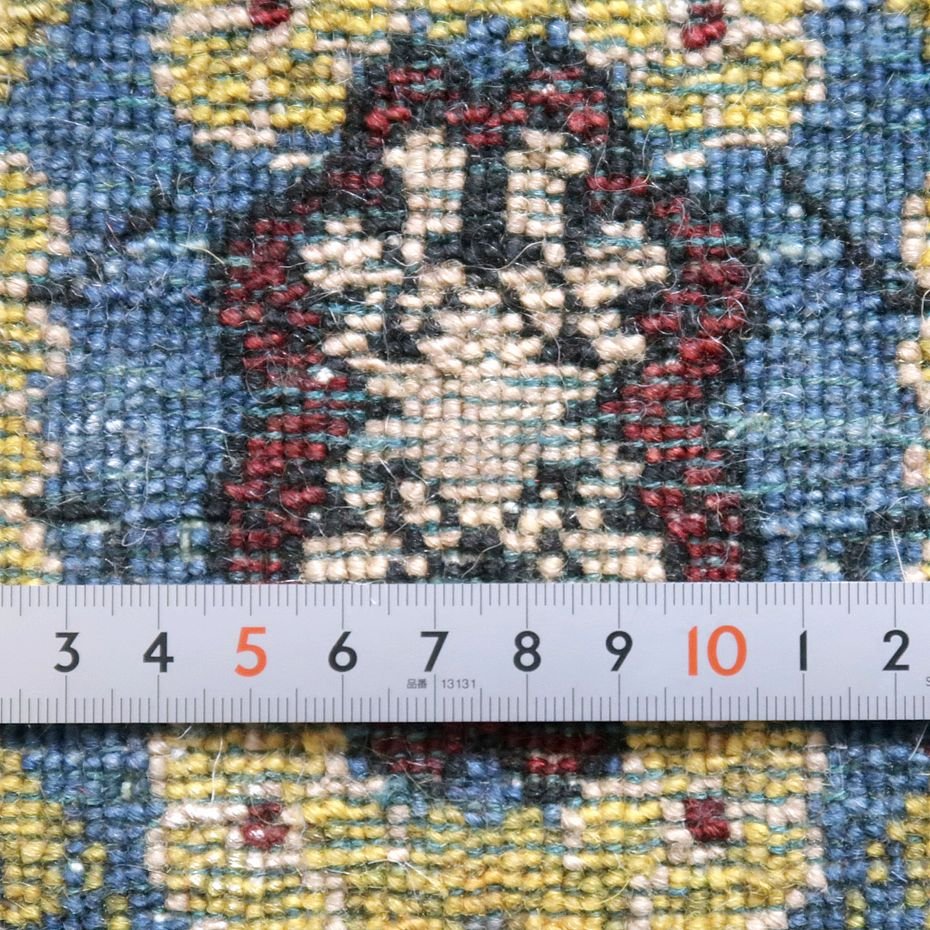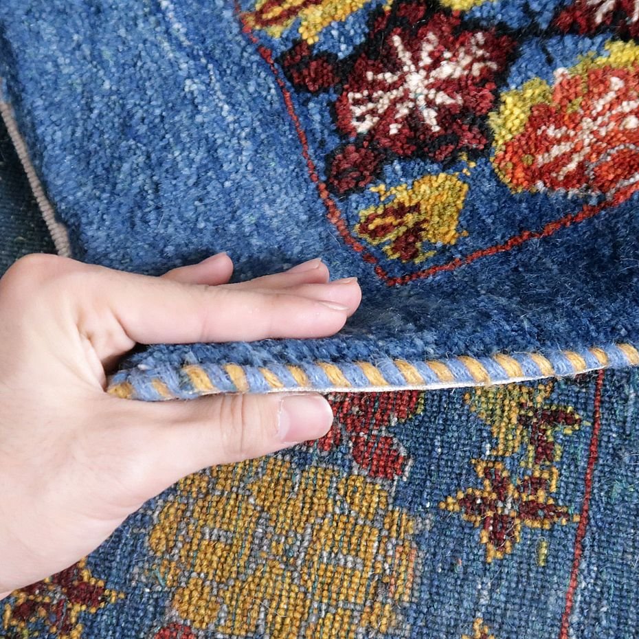 織りは、10cmあたり、およそ40から45目という普通のギャッベの数倍にもなる大変細かなルリバフ。抜け毛が少なく、手触りはふわりと柔らか。踏んだ時やんわりと沈み込む踏み心地です。腕の良い選りすぐられた織り子だけが手掛ける極上の手仕事です。