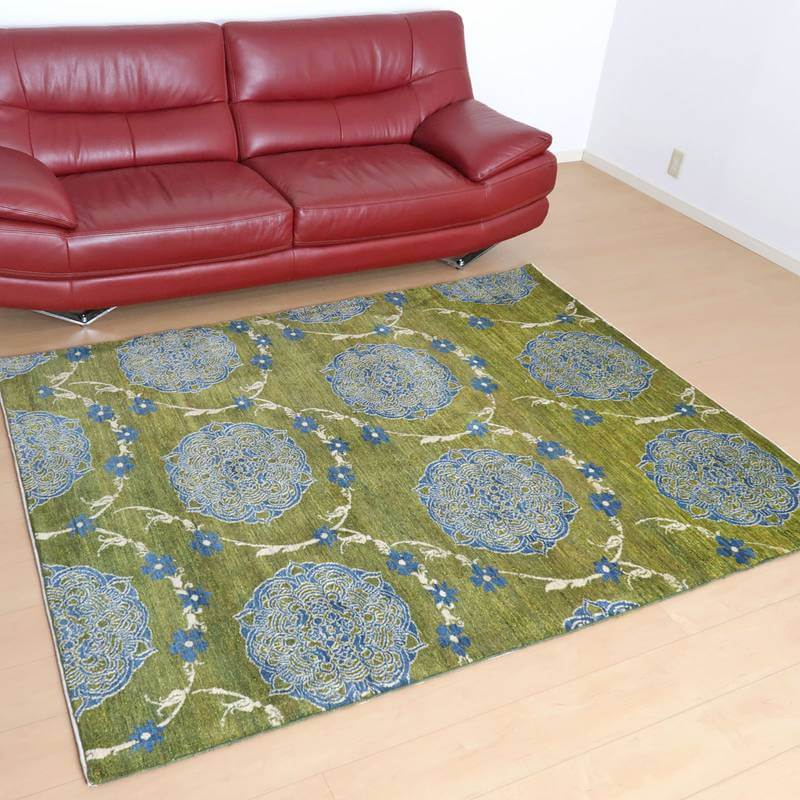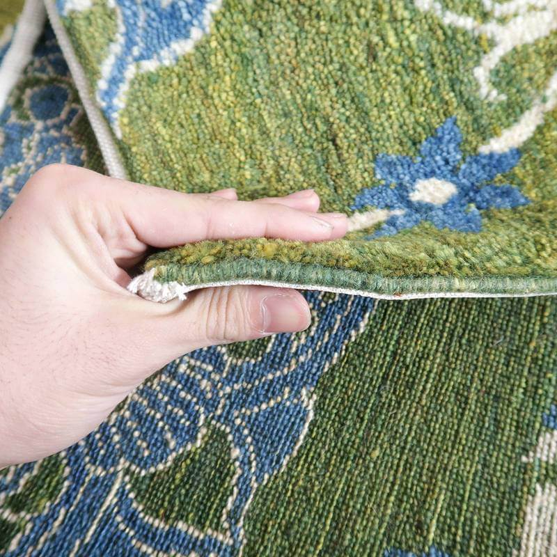 織りは、10cmあたり、およそ40から45目という普通のギャッベの数倍にもなる大変細かなルリバフ。抜け毛が少なく、手触りはふわりと柔らか。踏んだ時やんわりと沈み込む踏み心地です。腕の良い選りすぐられた織り子だけが手掛ける極上の手仕事です。