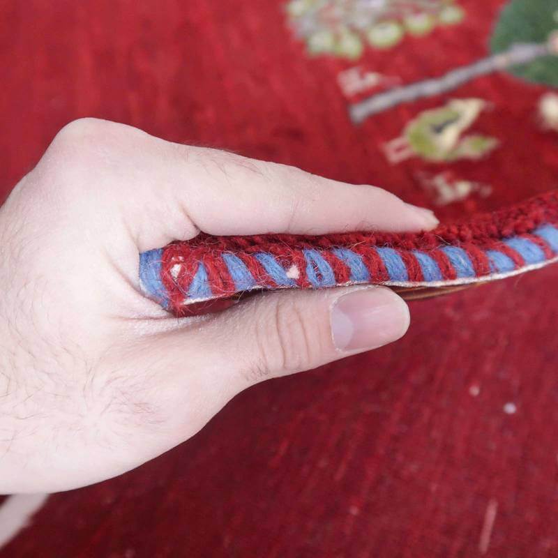 織りは、10cmあたり、およそ40から45目という普通のギャッベの数倍にもなる大変細かなルリバフ。抜け毛が少なく、手触りはふわりと柔らか。踏んだ時やんわりと沈み込む踏み心地です。腕の良い選りすぐられた織り子だけが手掛ける極上の手仕事です。