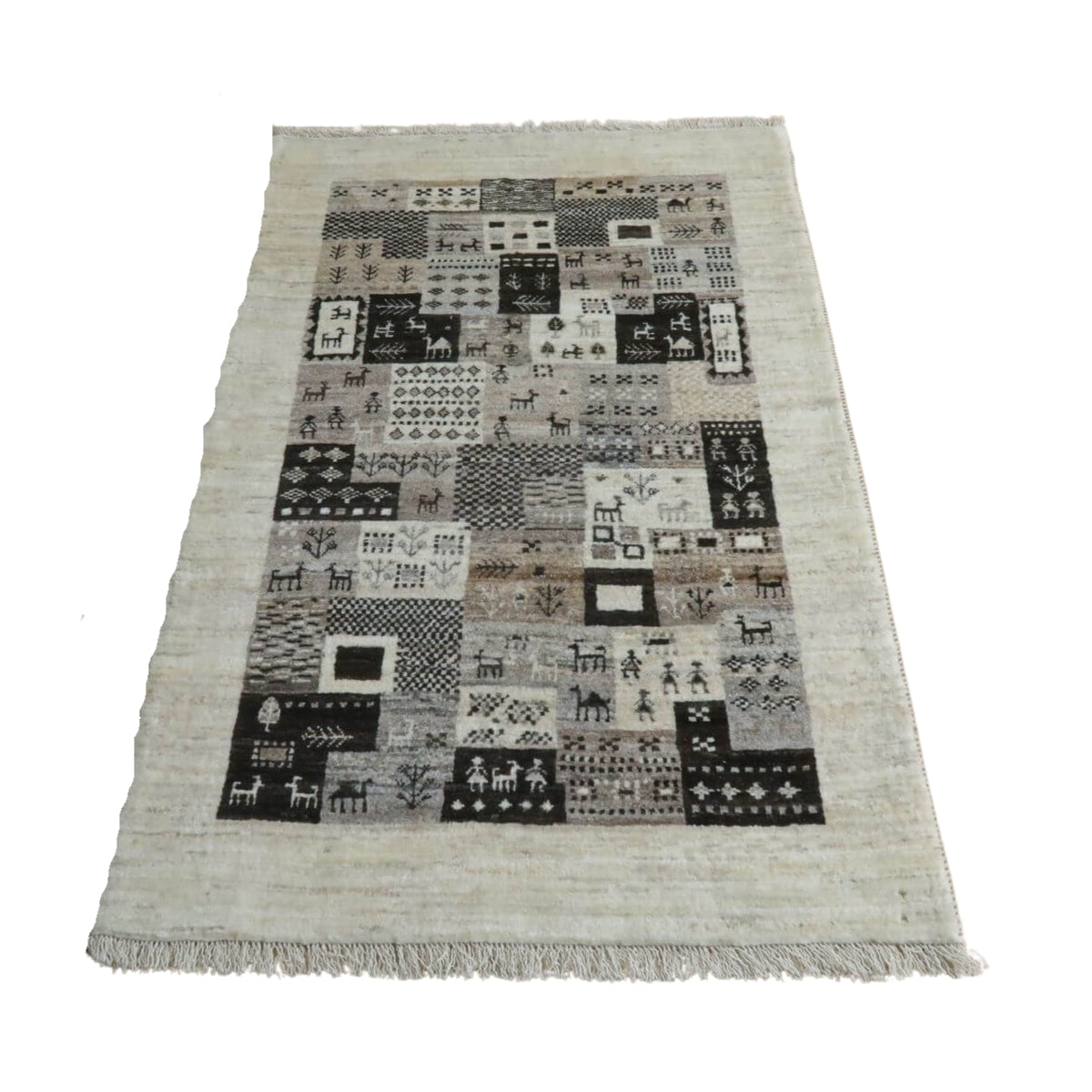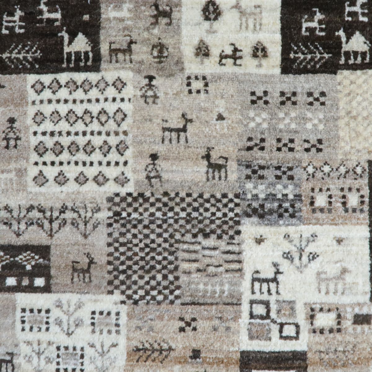 自然の景色や身近な物をパッチワーク風のデザインにした、一つ一つ眺めて楽しいギャッベです。