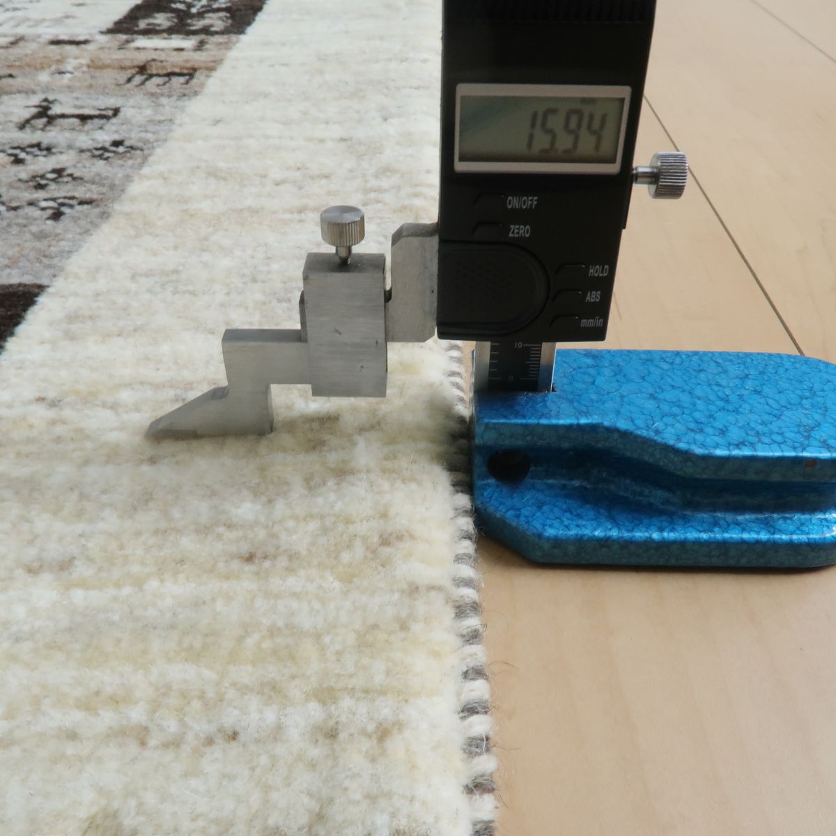 細めの糸でぎゅっと細かく織られた目の詰まった毛足。床の硬さと冷えをブロックしながらも扱いやすい軽さで一年中敷いたままで快適です。