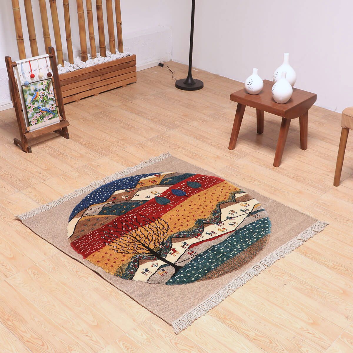 ギャッベ(ギャベ)ルリバフ 107×104cm(HM-70007)